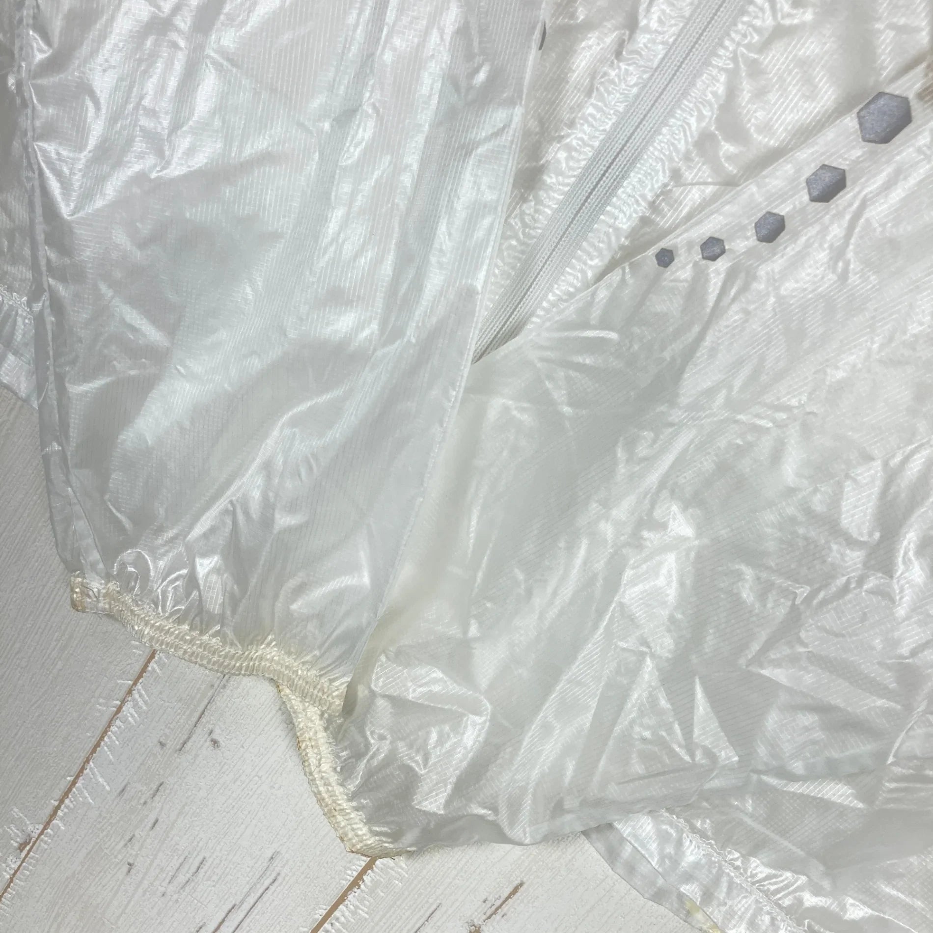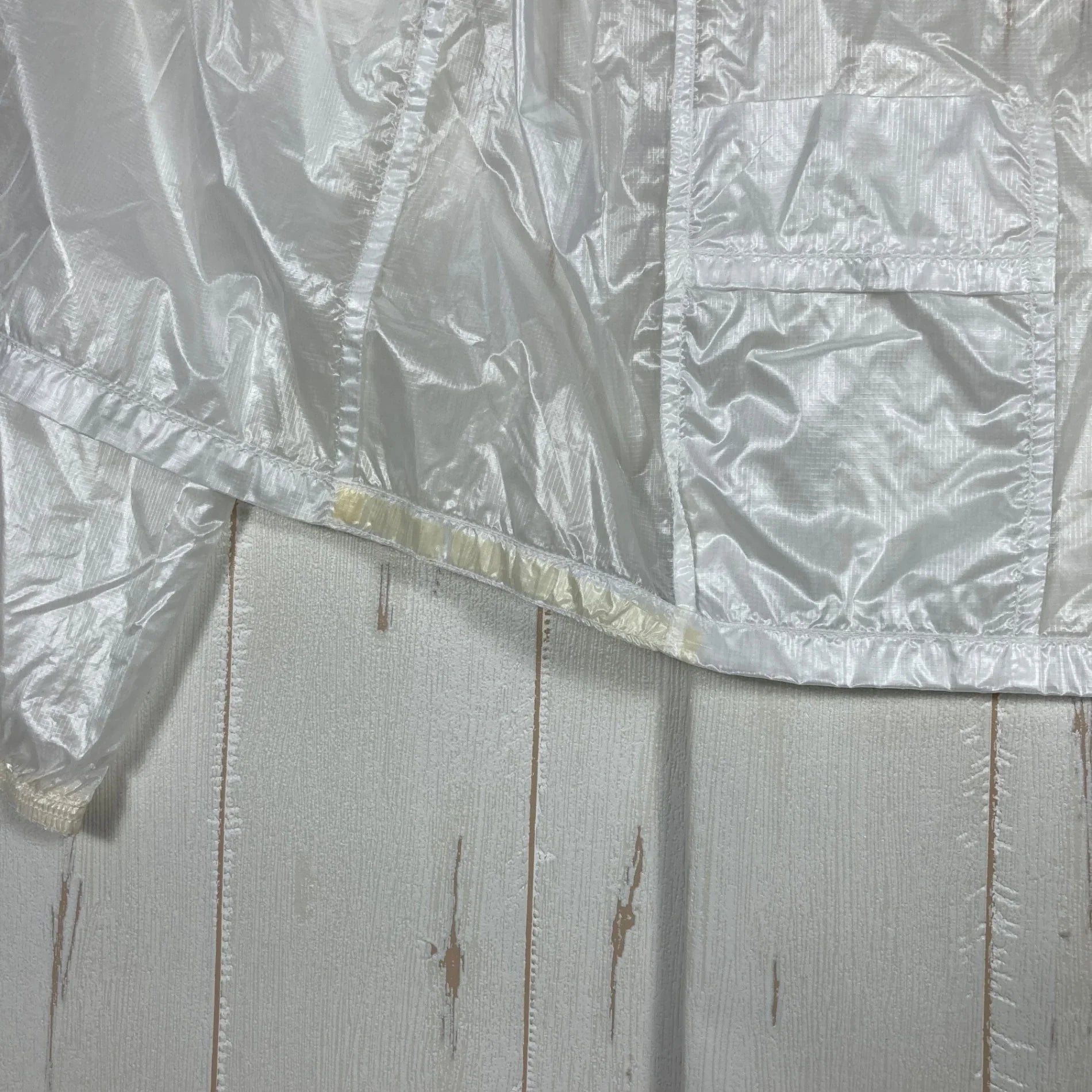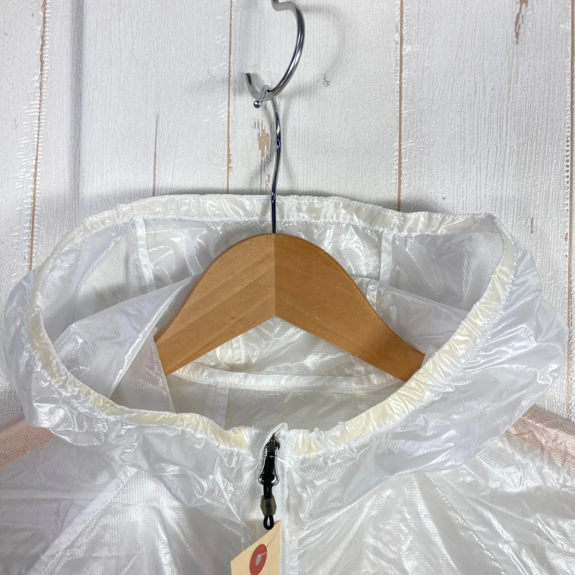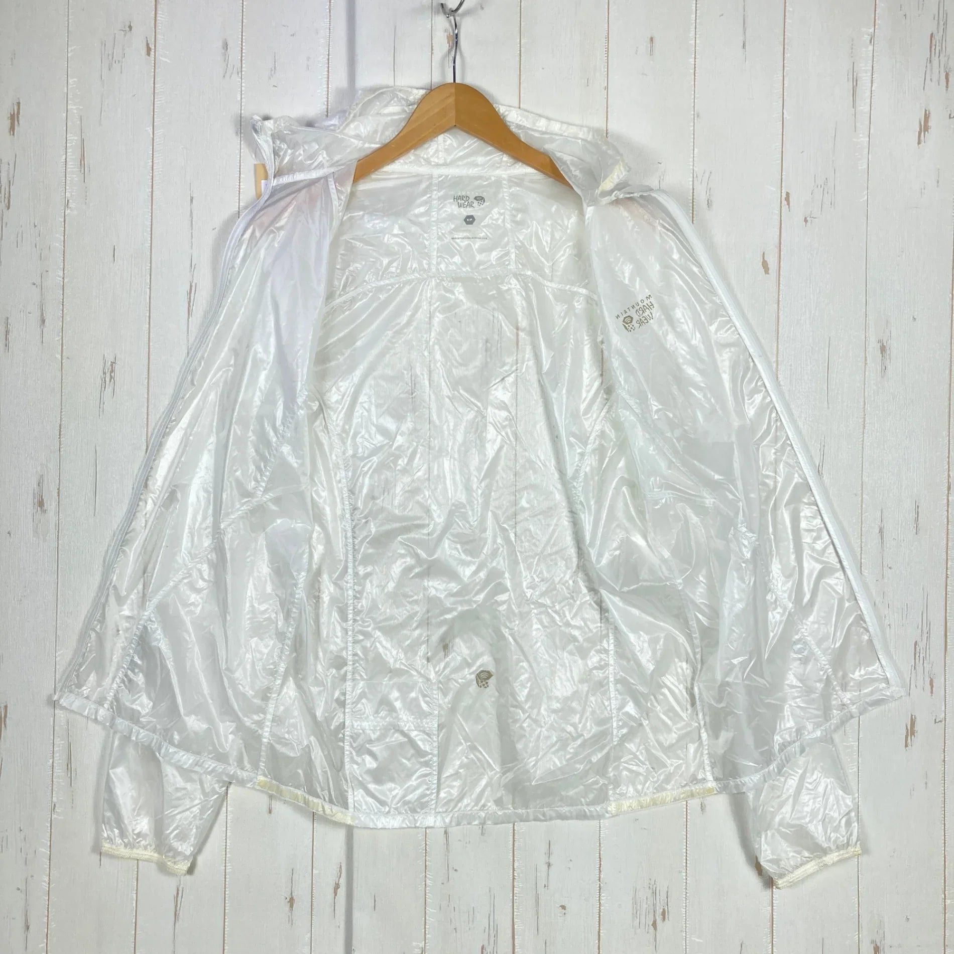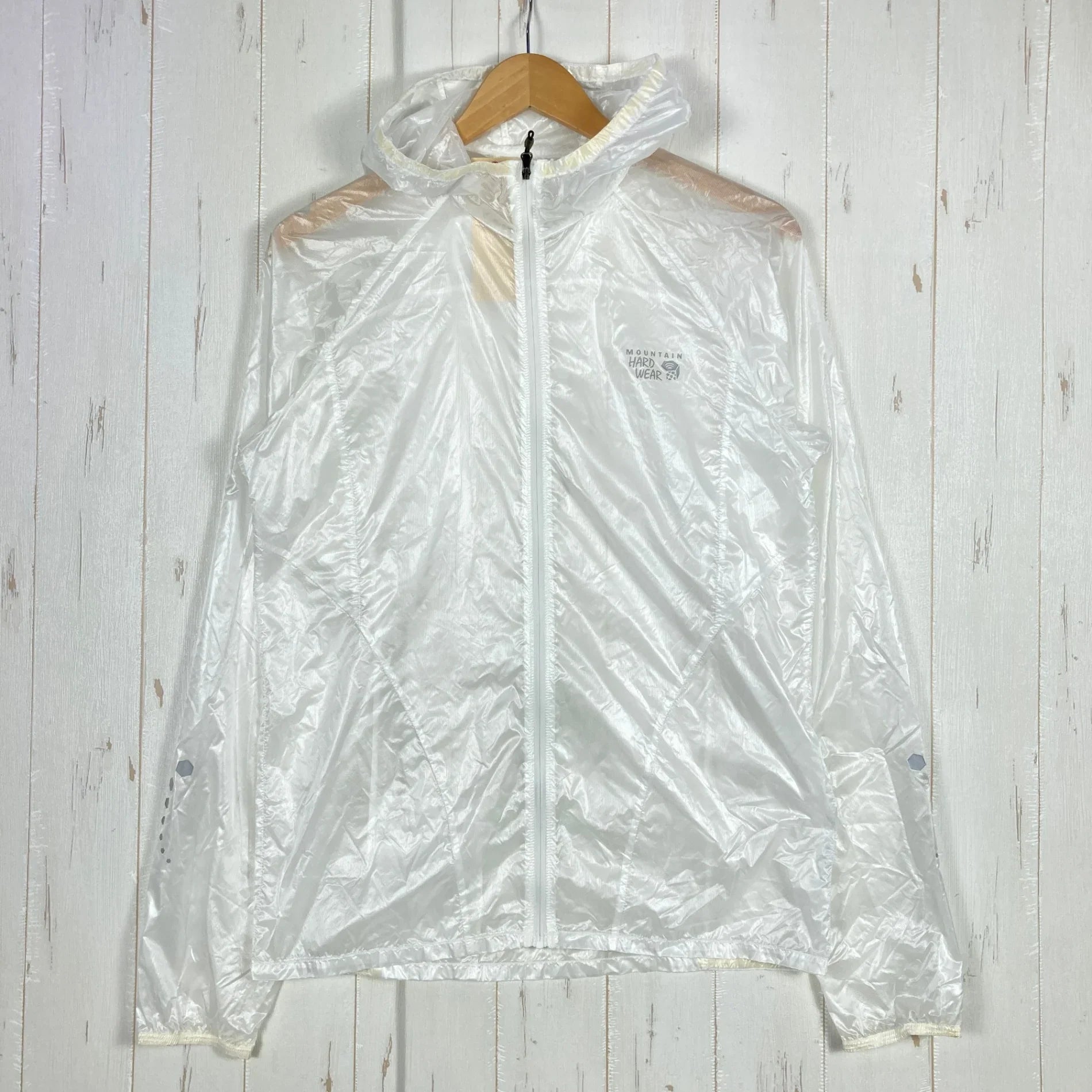 Mountain Hardwear Ghost Whisperer Hooded Jacket, Men's Size Small, White. Nylon outerwear, windshield, and top.