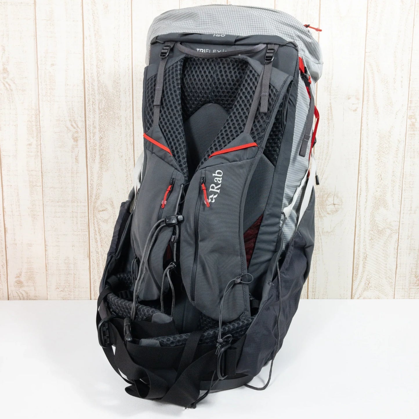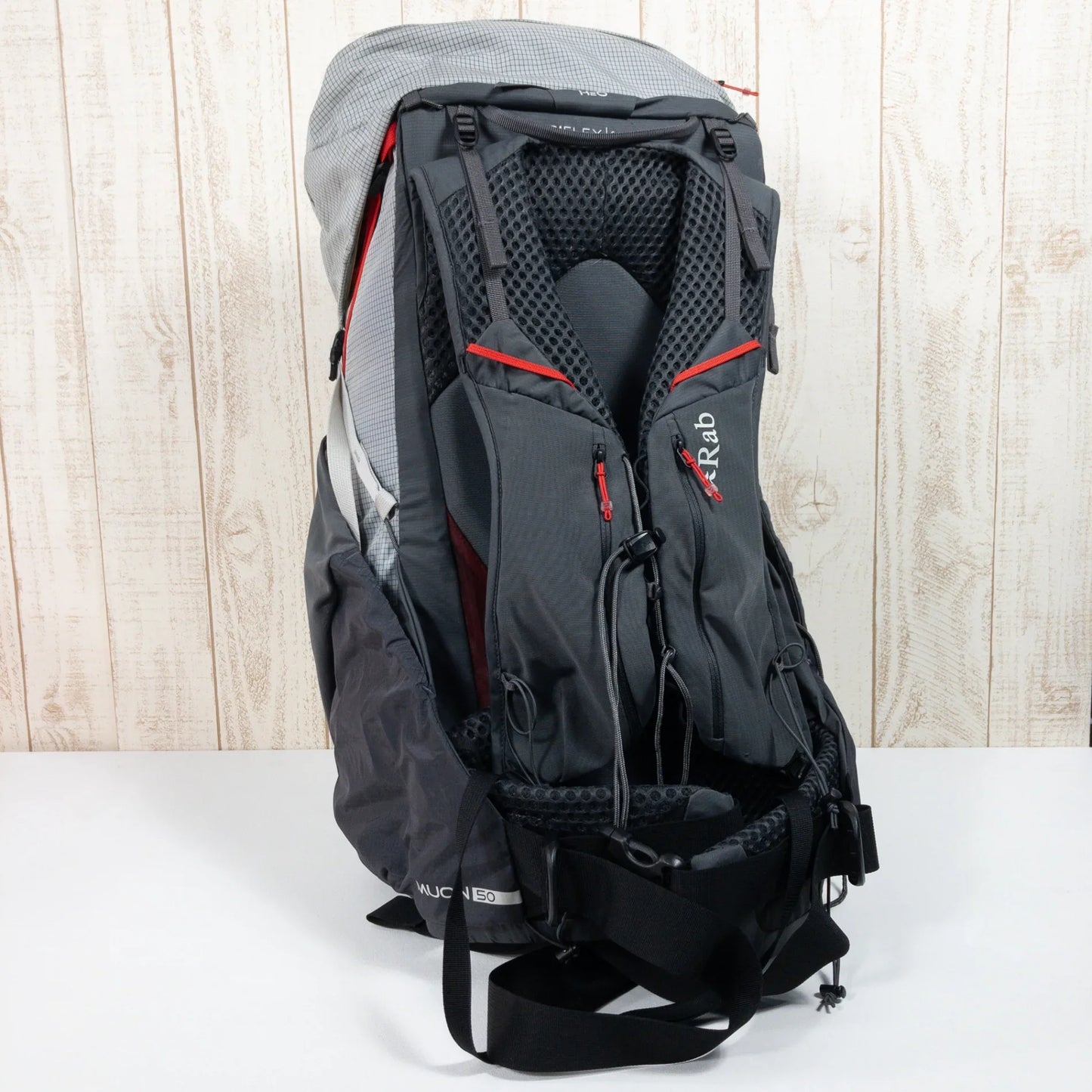 This 50L pack is designed for hikers looking to travel long distances with light equipment. The material used is Spectra Ripstop, which provides a high level of protection and lightweight performance. By rationally arranging the removable padding (including sprung parts), cords, mesh and padding, waste is kept to a minimum while still providing high performance. Not only is the pack lightweight, but it also has excellent rigidity and balance throughout the pack, designed to carry a certain amount of luggage, as well as a flexible design that follows the movements of the body when worn. This is a new concept pack that reflects Rab's innovative manufacturing spirit. - TRI-FLEX carrying system is lightweight and stable with a wrap-around harness construction for optimal comfort - Shaped lumbar pad and supportive hip belt for optimal fit and comfort even during long periods of use - Forward pull hip belt for easy adjustment and stability - Removable padding with internal and external pockets ・Top compression straps ・Shoulder harness zip pocket -Large capacity side pocket - Large front pocket for quick access Ultralight compression, lower straps perfect for carrying extra gear - Compatible with folding and Z-folding pole carriers - 3L hydration sleeve ●Fabric: Main: Spectra Ripstop 100 denier 100% nylon Secondary: 100% nylon Lining: 100% polyester ●Country of origin: Vietnam Capacity: 50lt Back length: 48cm Weight: 0.995kg