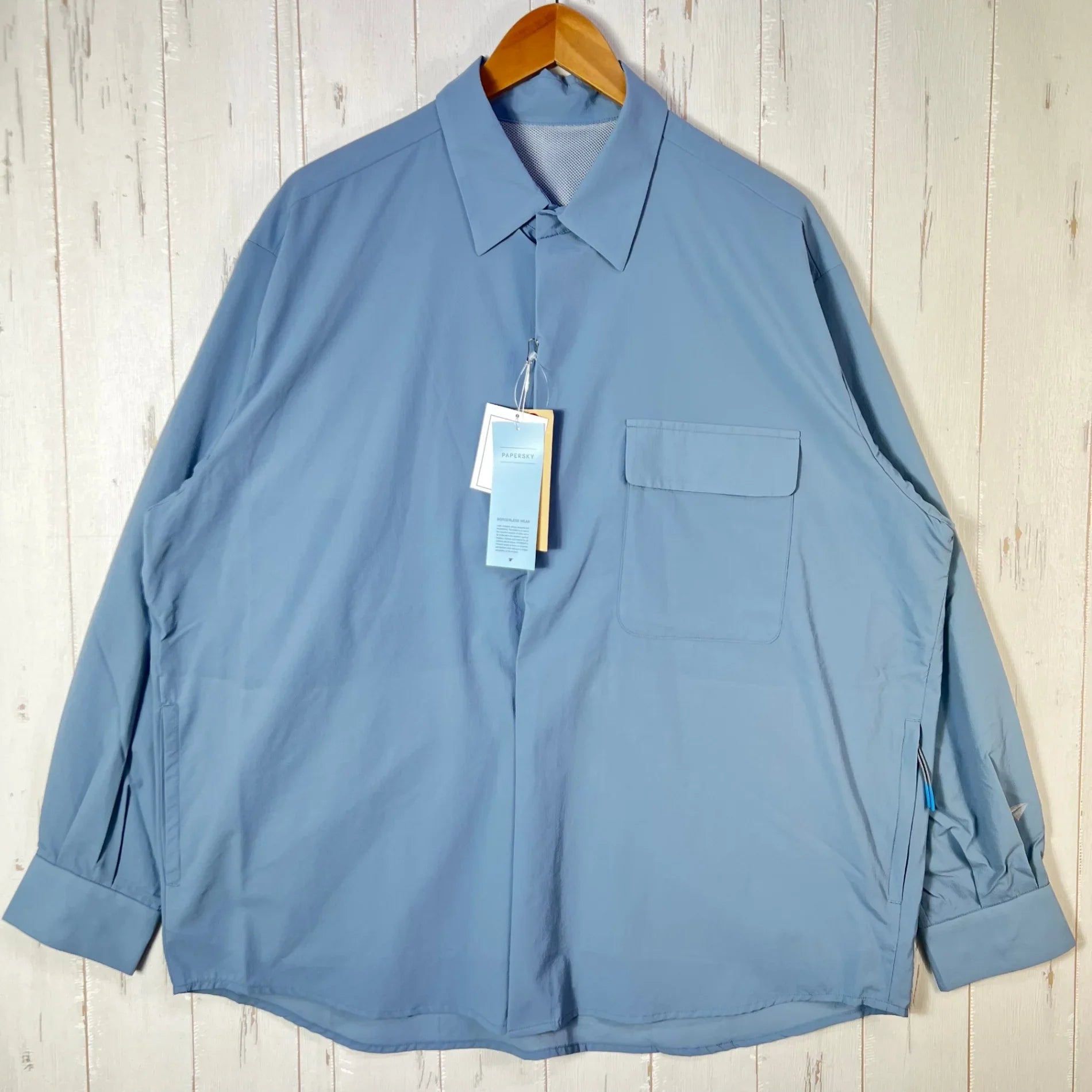 Unisex Medium Blue Paper Sky Wear Wind Big Shirt, Blue Gray, Nylon, Long Sleeve, Synthetic Fiber, z00053705, Blue