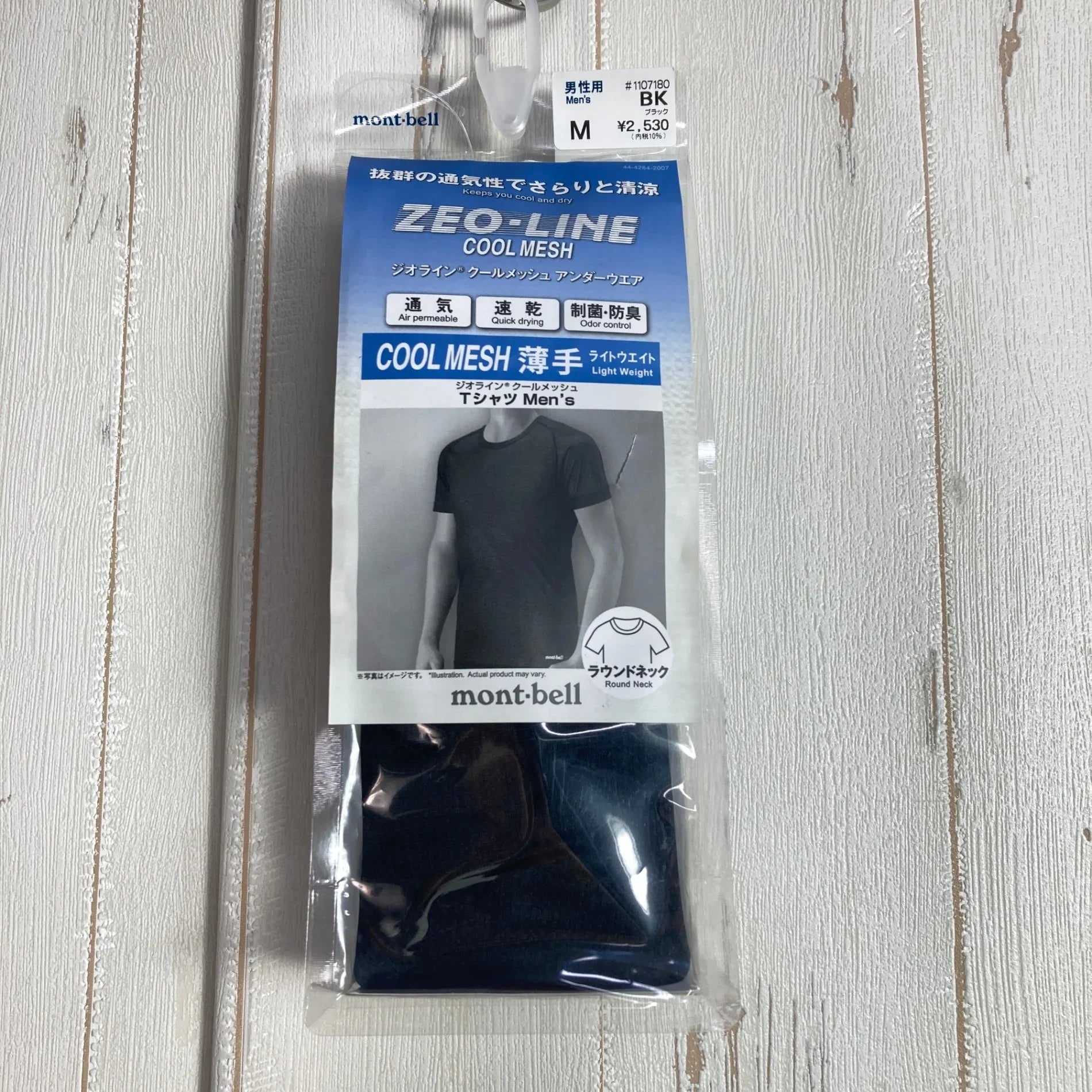 Montbell GeoLine Cool Mesh T-Shirt, Men's Size M (Black), Polyester, Short Sleeve Crew Neck, Synthetic Fiber, Top, Undershirt, z00054