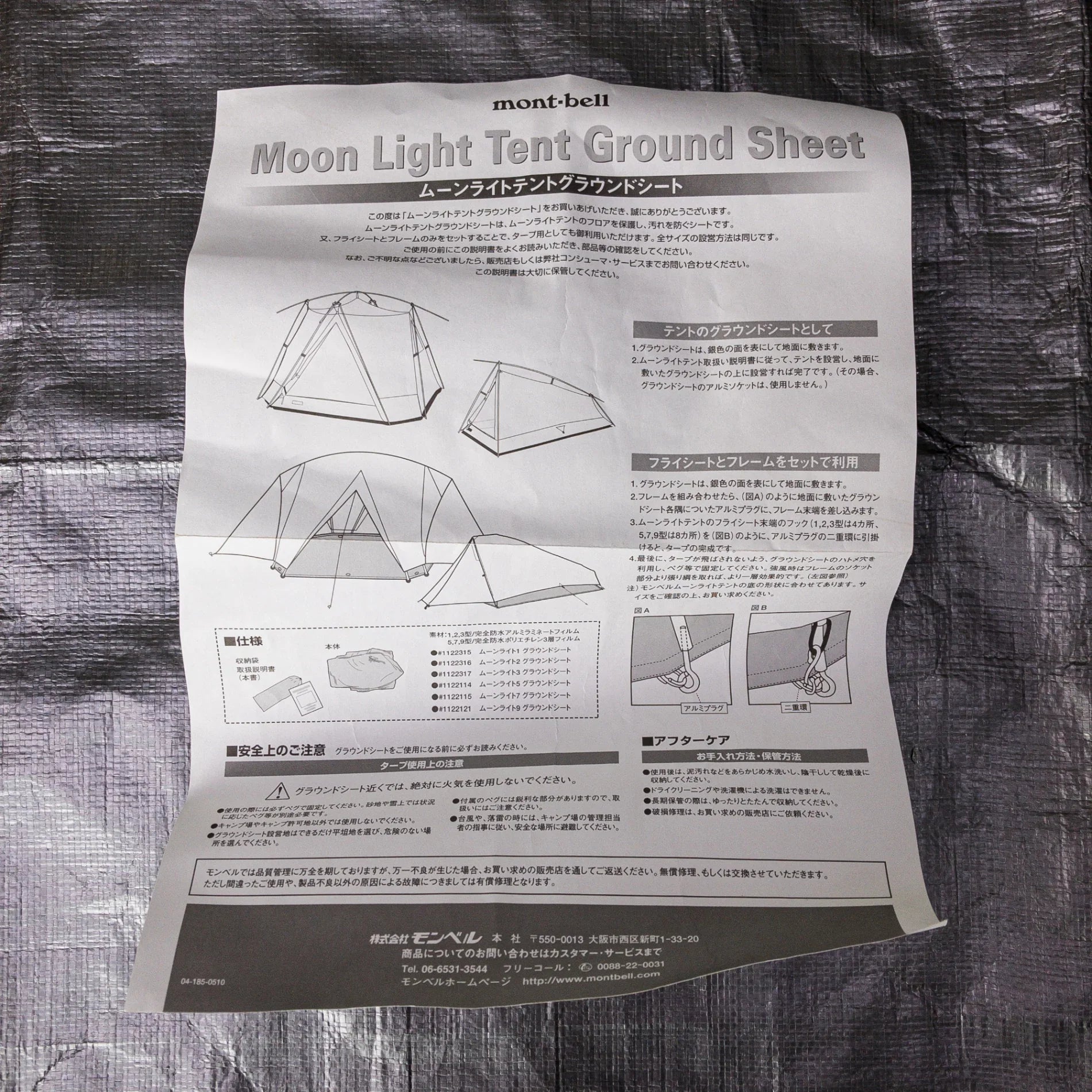 It prevents water from seeping in and dirt from getting into the bottom of the tent when pitching on rainy days or wet ground. Its size is also perfect for the floor of each Moonlight Tent, so by using the frame and flysheet, it can also be used as a freestanding tarp. There's no front or back, so you can use it however you like. It comes with a stuff sack. [Material] Completely waterproof polyethylene 3-layer film [Weight] 440g [Size] 215 x 105 cm Storage size: 6 x 12 x 28 cm