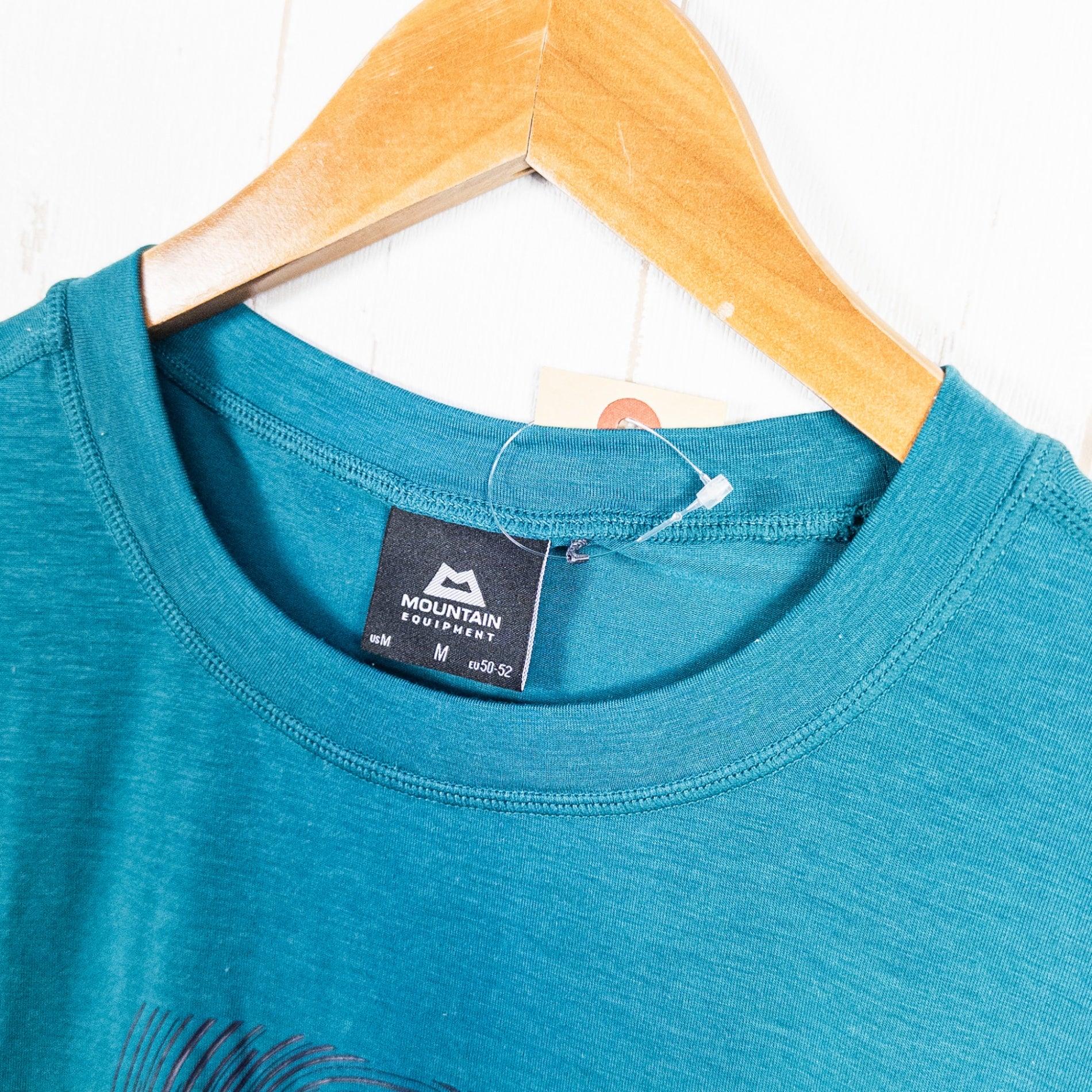 Mountain Equipment Men's Groundup Logo+ Tee, Size M, Green. Polyester, Short Sleeve Crew Neck T-Shirt.