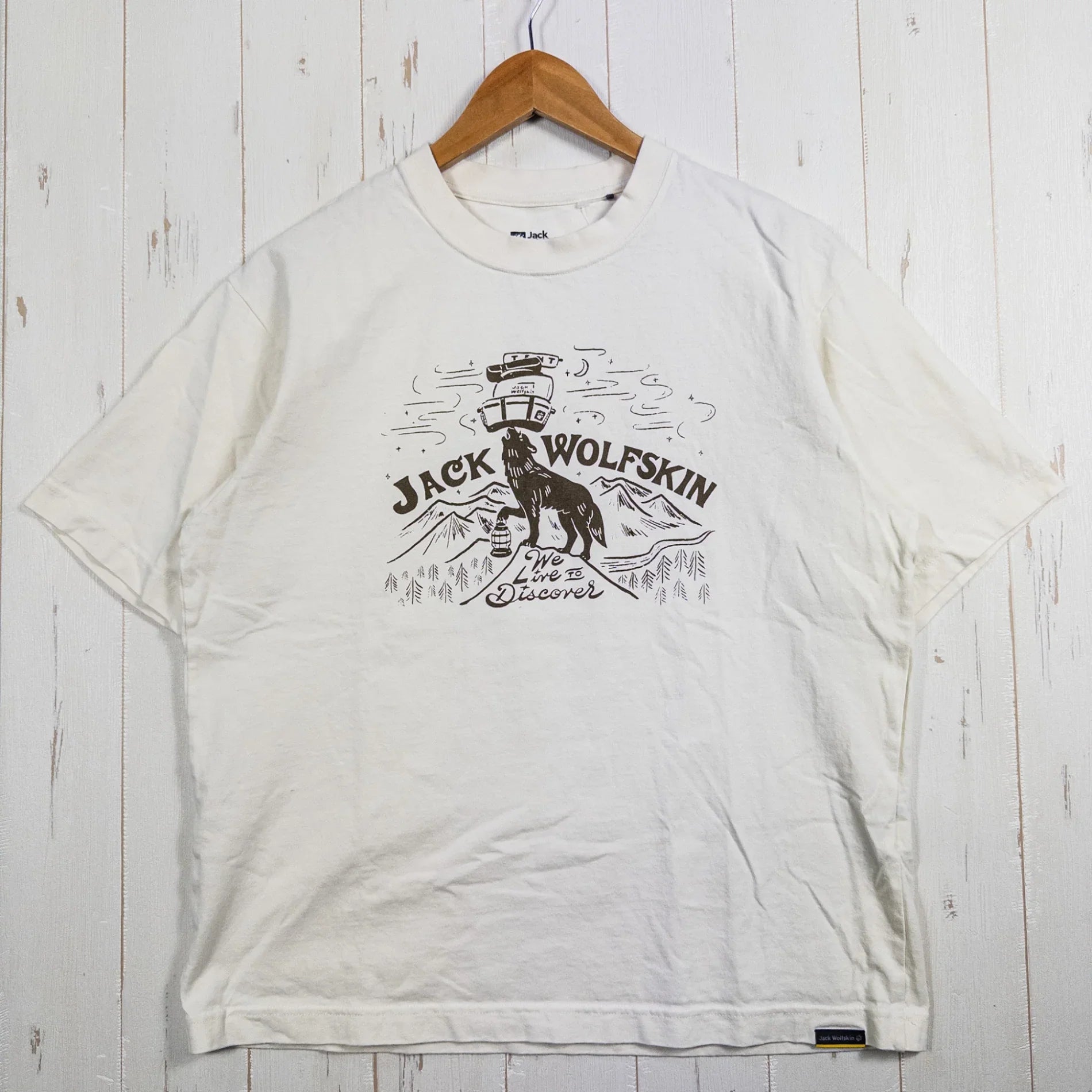 Men's Medium Ivory Jackwolfskin JP WHW PEAK WOLF Tee, Organic Cotton, Short Sleeve Shirt