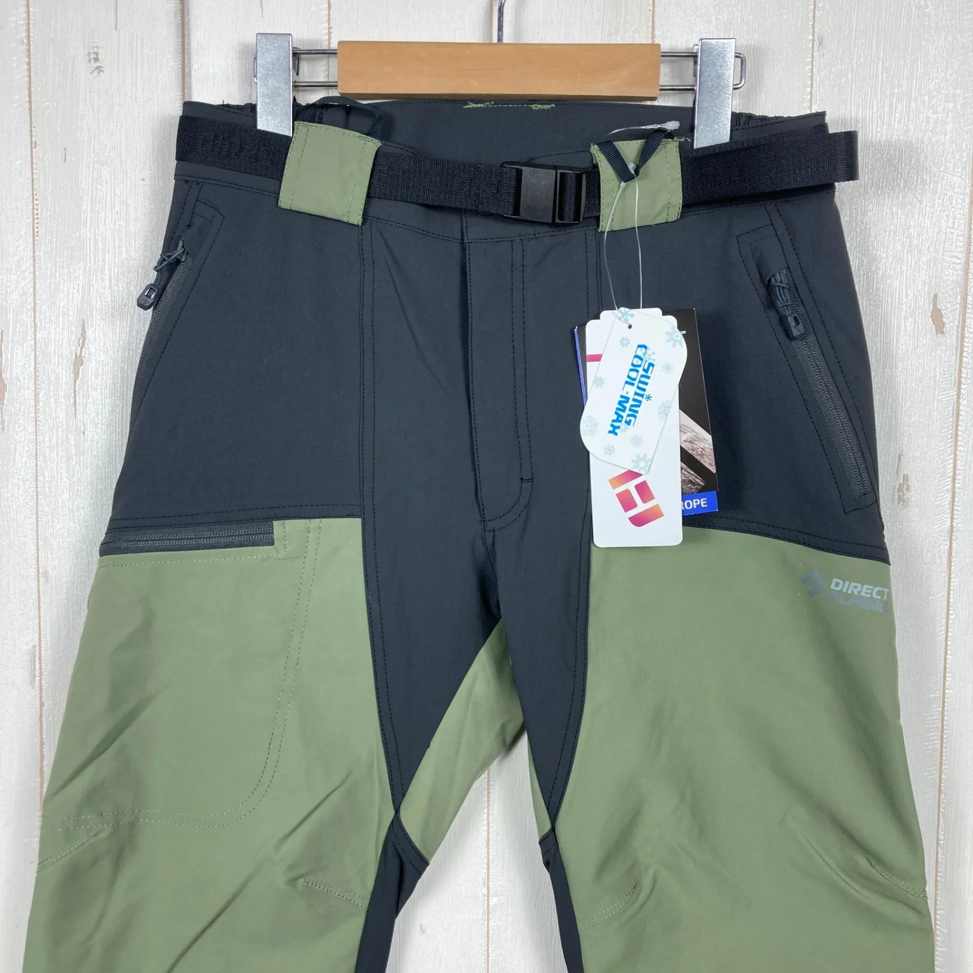 These pants have a technical construction that makes full use of extraordinary cutting technology, and are made from a lightweight hybrid material called SWING COOL, which is quick-drying and has excellent cool-touch properties, combined with the recycled material ESPOL STRETCH, which has proven durability and stretch.These alpine trekking pants are ergonomically placed in various places and feature three-dimensional cutting to achieve the ultimate fit, making them comfortable and easy to move in even when wearing a harness. Equipped with a magnetic belt to minimize slippage around the waist. There is a ventilator inside the zip pocket and the hem is adjustable with buttons, so you can adapt to any situation. Furthermore, its sophisticated silhouette makes it ideal not only for field activities, but also for long-term travel and everyday use.