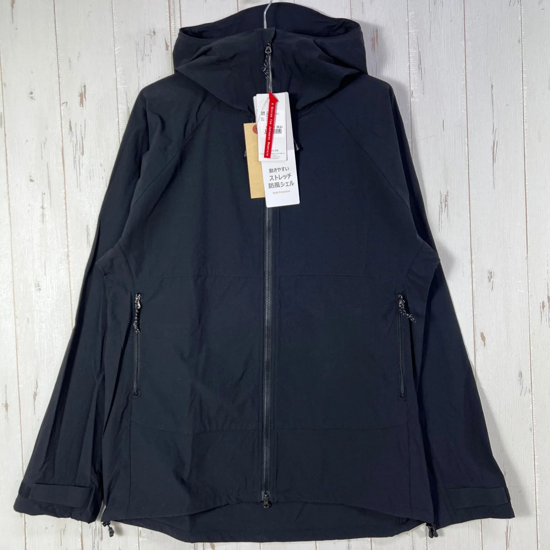 This double-weave soft shell jacket offers a perfect balance of wind resistance, breathability, moisture permeability, and stretch. Far more durable than conventional windshells, it's safe to wear in tough environments like rock climbing, bushwhacking, and variation routes. Its unique double-face construction ensures high wind resistance while also ensuring moderate breathability, preventing overheating and allowing sweat to escape continuously. Even the finest details are tailored for technical use, including a helmet-compatible hood with a unique AXESQUIN design slit for hair removal. The front features a double zipper that opens both up and down for ventilation and convenience when wearing a harness. The pockets are positioned high to prevent interference with a backpack hip belt, making this a versatile piece for all seasons, from serious climbing and mountain climbing to everyday use. Material: 88% nylon, 12% polyurethane (90D x 90D double-faced stretch fabric) Features: Windproof and breathable (breathability 2.3cm³/cm²/s), all-way stretch, durable water repellent, helmet compatible hood, double front zipper Features: Hood slit for hair removal, backpack interference prevention pocket, YKK POWER HOOK cuffs (glove interference suppression), reflective logo z00055908