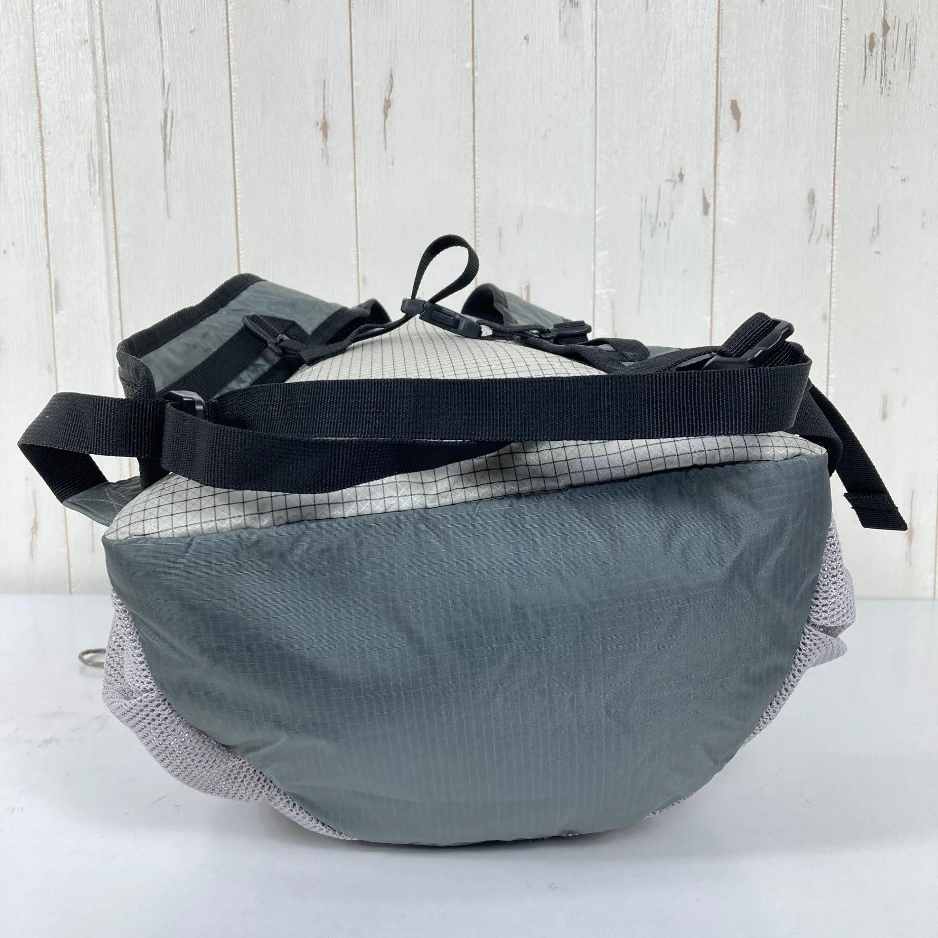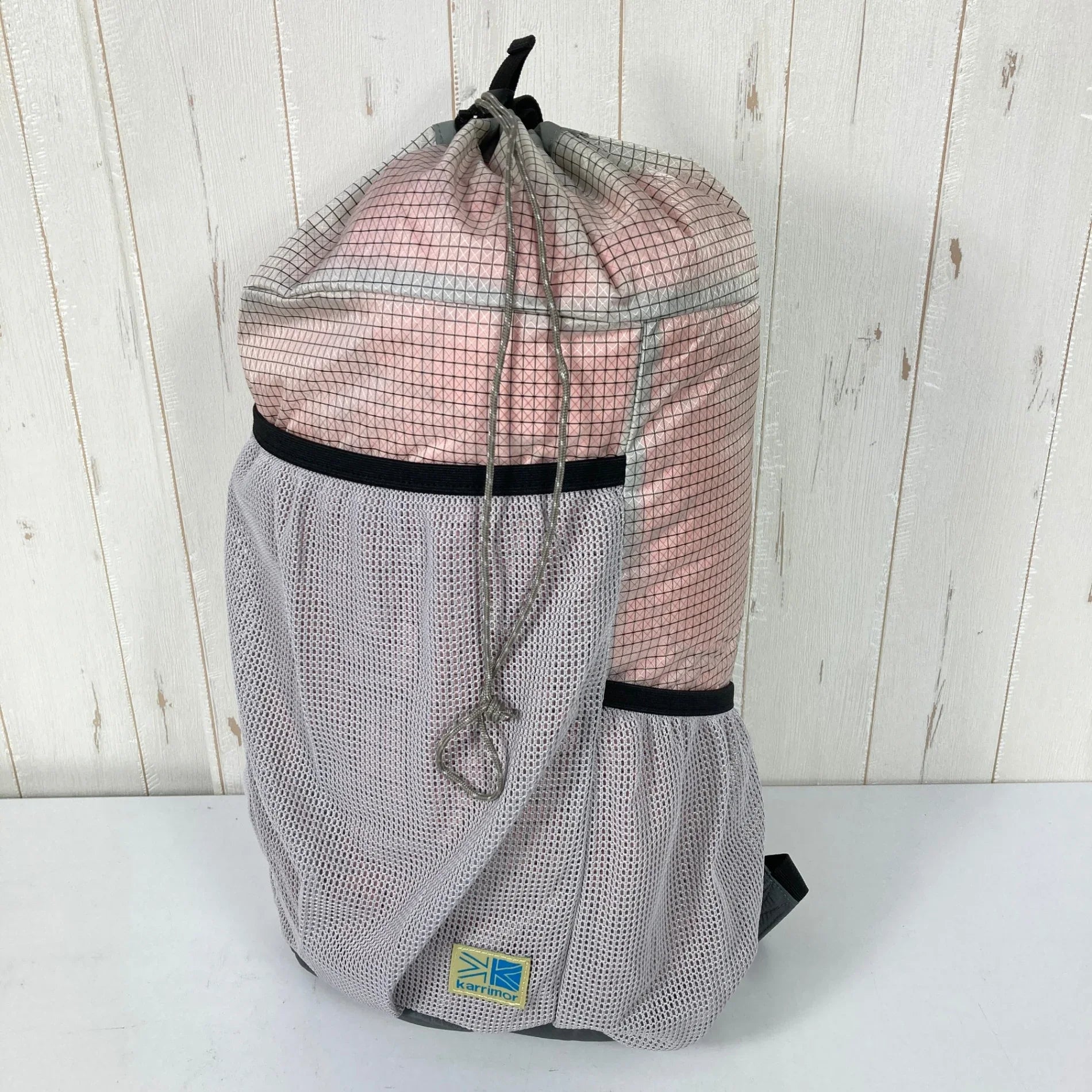 The Grab Knapsack is a knapsack that the British brand Karrimor has been selling since 2022. It is one of the items that is trusted for its practicality, with some members of the Randonne editorial team using it as a regular user. This time, the editorial team's desire to "create a grab knapsack that can be used for multiple purposes while traveling" has been heard, and this first special order has been realized. The mesh pockets, harness, bottom, top handle, and drawcord are all custom-colored. The white and gray color scheme is reminiscent of summer clouds, with a bright blue top handle that will add a touch of style to any outfit. There are also many other custom touches, such as a color change to the Karrimor brand logo and the inclusion of an original Randonne logo. Its functionality is as easy to use as a grab knapsack as it is. It comes with a chest strap that enhances the fit, making it versatile for everyday use and even as a secondary backpack for mountain climbing. It's a must-have item for anyone who wants to enjoy light travel, whether in town or in the mountains. Size: One Size Height 43.5 x width 27 x depth 15.5 cm Weight: 260g Material: N100D X-GRID R/S NY (89% nylon, 11% polyethylene)