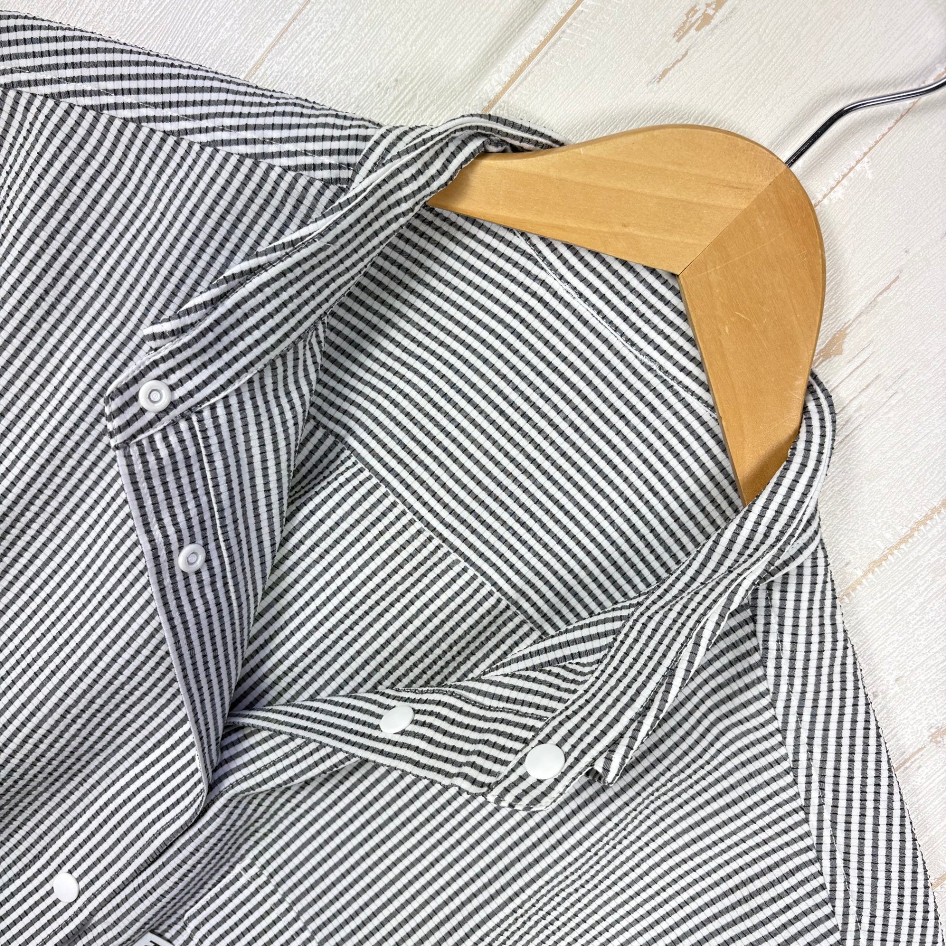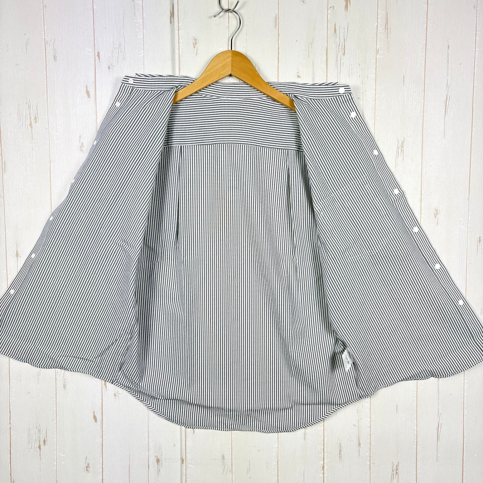 クラシックなワークウェアを思わせるストライプシャツです。Primeflex×Dot Air2Wayサッカーストライプ生地を採用し、4Way伸縮性・高通気性・速乾性を備えています。丸みを帯びたラウンドエッジ、コンパクトなスタンドカラー、放電テープ(4箇所)を採用。 素材: ポリエステル100% 機能: 4Wayストレッチ・高通気性・速乾・防シワ 特徴: 日本製、YKK PLANCERスナップボタン、ハンガーループ付 z00055799