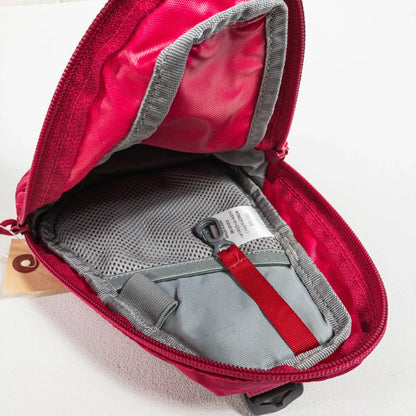 バックパックのショルダーハーネスやベルト部分に装着できるアクセサリーポケットです。内側にはペンホルダー、キーチェーン、メッシュポケットを備え、小物やスマートフォン、コンパクトデジカメなどの収納に最適。360度パッド入りで中身をしっかり保護します。背面にはデイジーチェーンがあり、カラビナ等での拡張も可能。取り外し可能なショルダーストラップ付きで、単体での持ち歩きやネックストラップとしても使用できます。素材はナイロン系で、軽量かつ耐久性に優れています。