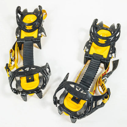 一般縦走から氷雪壁まで対応できるアイゼンの基本形。 爪が長く鋭い為、急斜面、軟雪などあらゆる状況に対応。 雪山全般に安心して使えます。 アンチスノープレートは雪が付きにくいと評価が高いです。 つま先、かかと共にプラスチックハーネス。 多くの登山靴に対応しています。