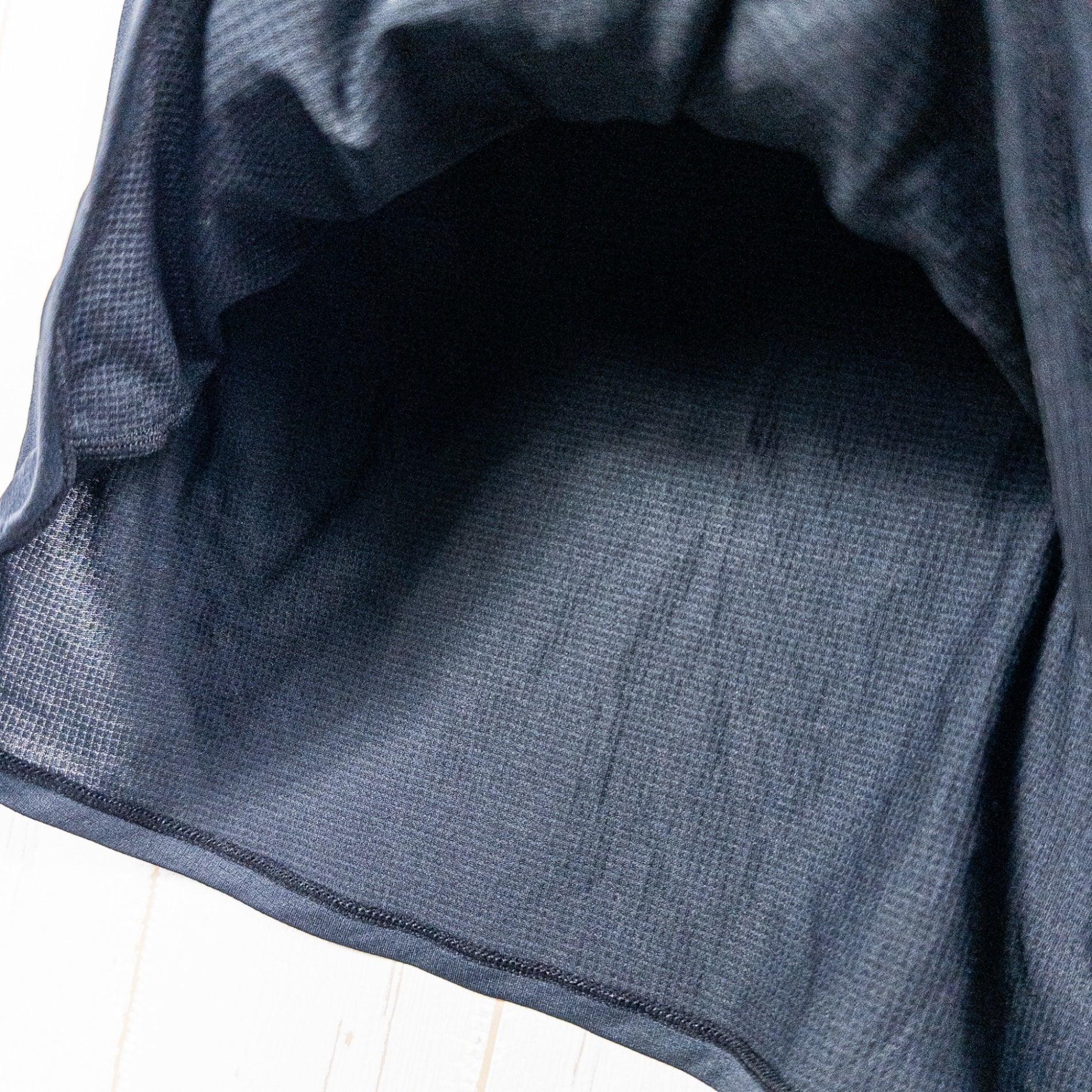 肌面には繊維内に水分を含まないポリプロピレン、表側に吸汗拡散性を持たせたポリエステルを配備したアンダーウェアです。 身体から出た汗をウエア表面へと迅速にシフトし、肌に触れる面には一切水分を残さない、戻さないというコンセプトで開発。 通気性の高いグリッド状組織デザインと、疎水と吸水という異なる性質を組み合わせたダブルフェイス構造で運動時の快適さを向上させます。 極薄で軽く、フィット感の高いシルエットです。