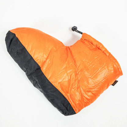 ふくらはぎを覆うスパッツ状カバーで雪の侵入を防ぐ。 ●素材/表地:20d×30dポリエステル、底布地:210d防水ナイロ ン、ポリウレタン滑り止め、中詰物:グースダウン90%(650フィル パワー)、底詰物:ポリエステル化繊綿●サイズ/S、M、L ●仕様 S (22.0~24.5cm) 羽毛量53g(ペアー) 重さ150g(ペアー) M(24.5~26.0cm)羽毛量68g(ペアー) 重さ190g(ペアー) L (26.0~28.5cm) 羽毛量86g(ペアー) 重さ240g(ペアー) ----------------------------------------