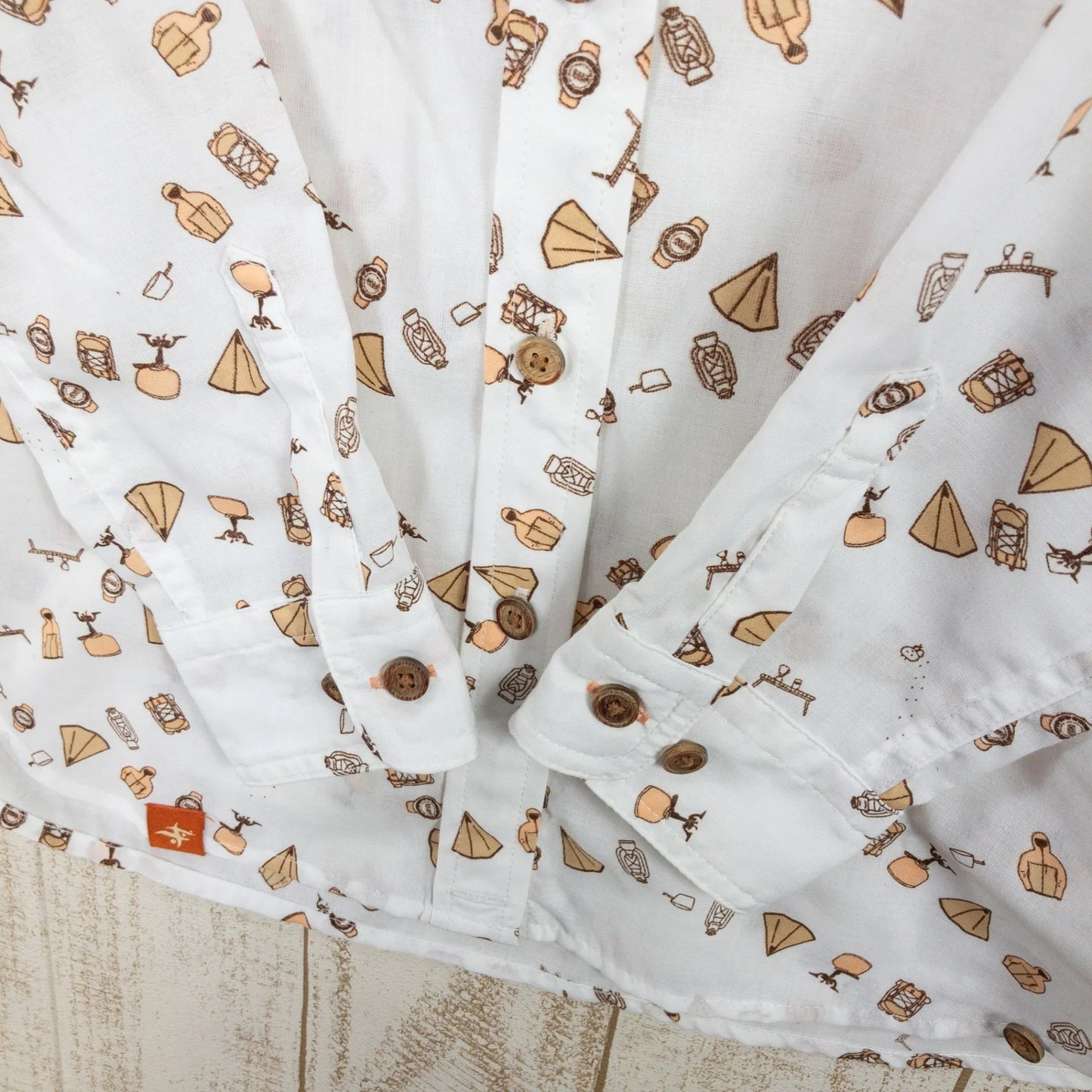 吸汗速乾性に優れたポリエステル100%素材を使用した薄手のシャツ。キャンプ好きイラストレーター「こいっち」こと、こいしゆうかさんによるキャンプ道具のイラストをデザインしました。裾のボタン留めでカシュクールにもなる2way仕様(ノンダーツシルエット)です。 ●イラストレーター「こいっち」とのコラボ企画 ●ザック、ランタン、テント・・・山の道具の中に「こいっち」キャラが登場 ●素材 : トランスウェット(R)ファインデニール(ポリエステル100%) ●重量 : 140g