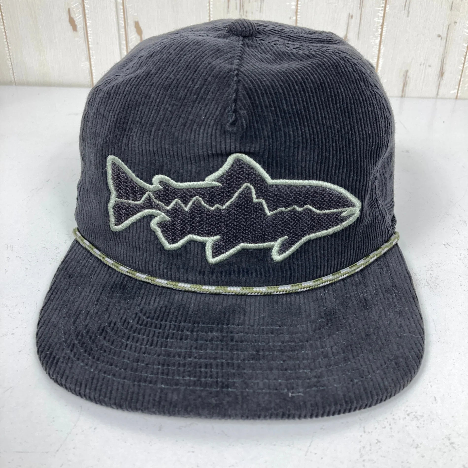 目を引くフロントのパッチにはフィッシング用のフライを留めておくこともできる、頭頂部が高めのオーガニックコットン100%のコーデュロイ製の帽子。 つばはリサイクルされた漁網を100%使用したネットプラス素材。 フェアトレード・サーティファイドの工場で製造