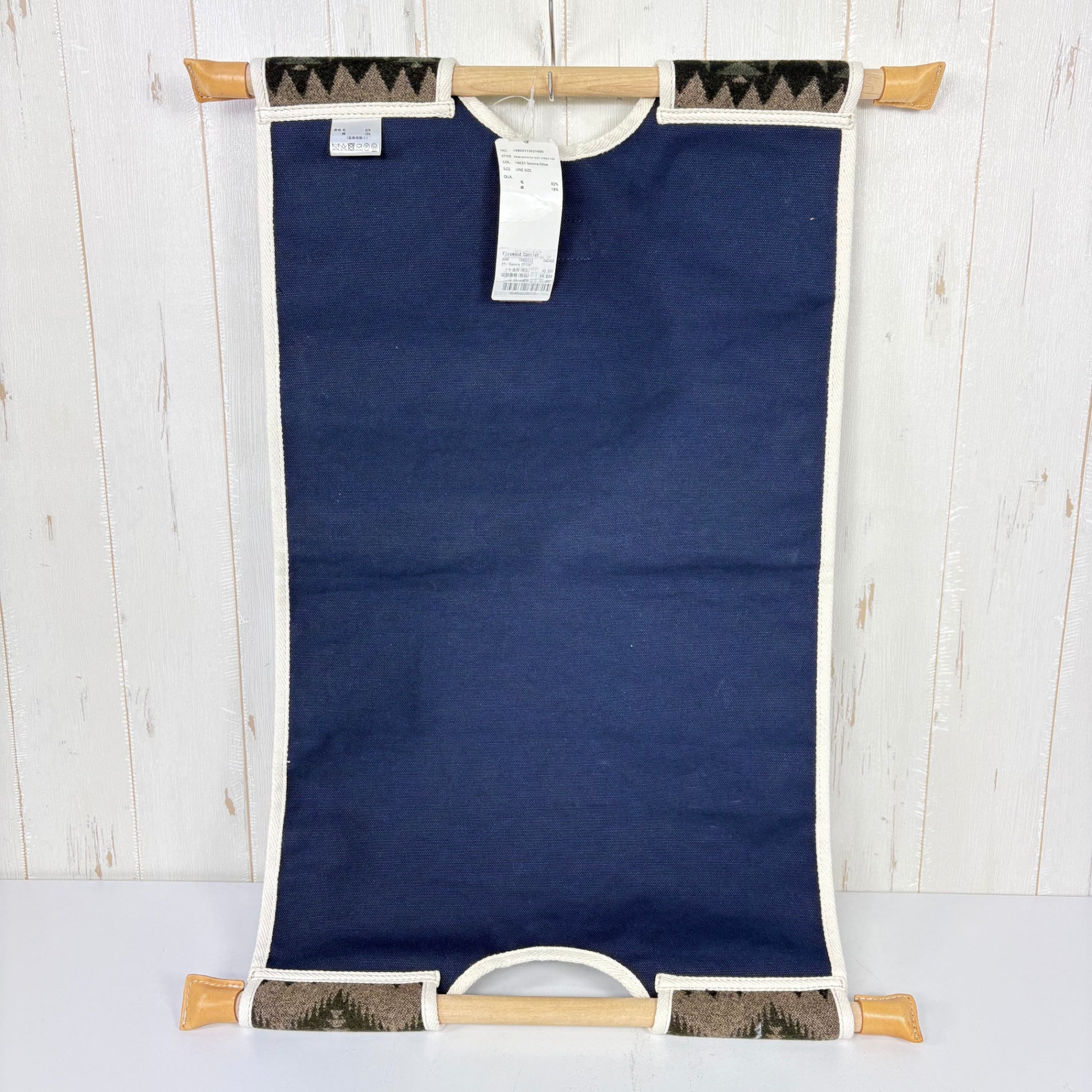 焚き火用木材を運ぶキャリア。ペンドルトンウール製で、30年ほど前にUS PENDLETON社から提案されたものを日本製で復刻。柄の出方が一つ一つ異なる。 z00056766