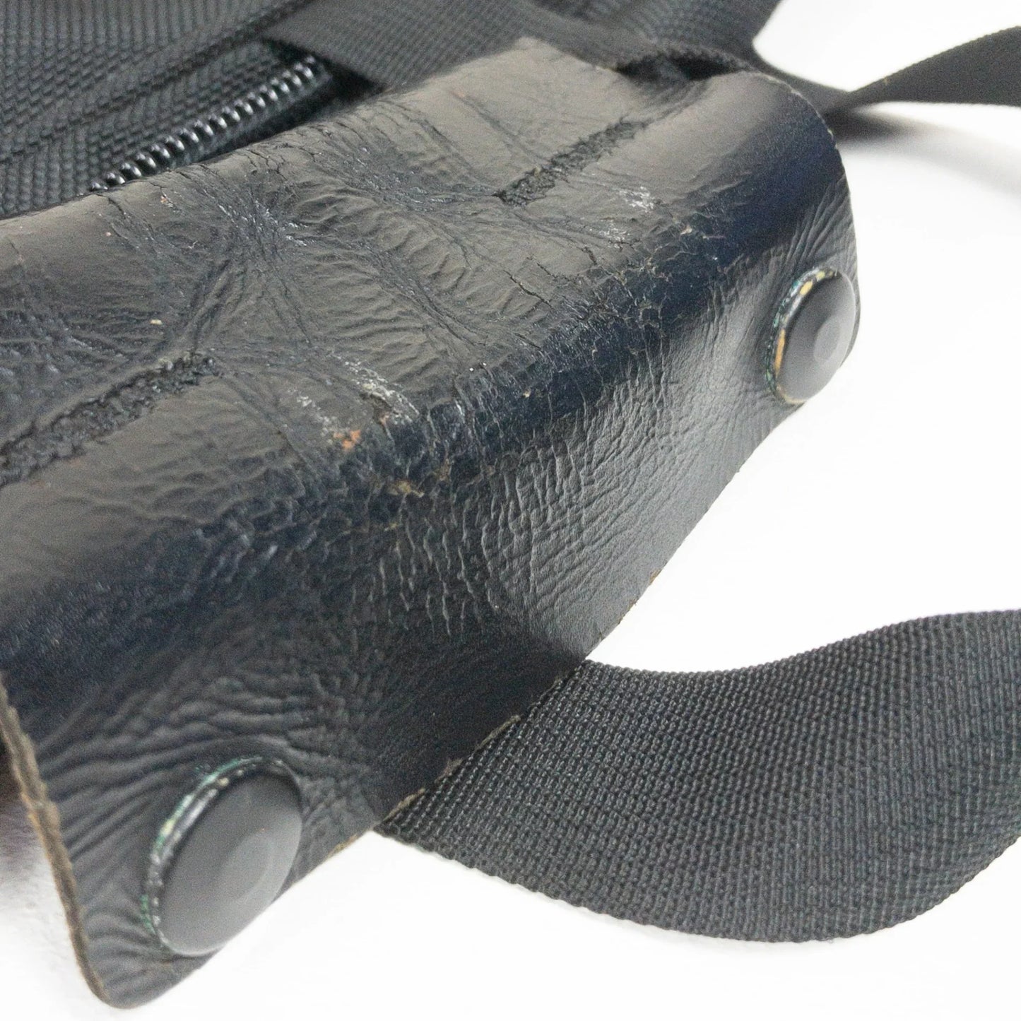 【使用感】多少の使用感あり 【汚れ】 内部・外側背面・ショルダー部分を中心に軽微な汚れ 【傷】 持ち手レザーにヒビ割れ・微細なスレ 【褪色】- 【臭い】- 【経年劣化】軽微なPUコーテイングの剥離がございますが、使用上の大きな問題は無い程度です。 【備考】-