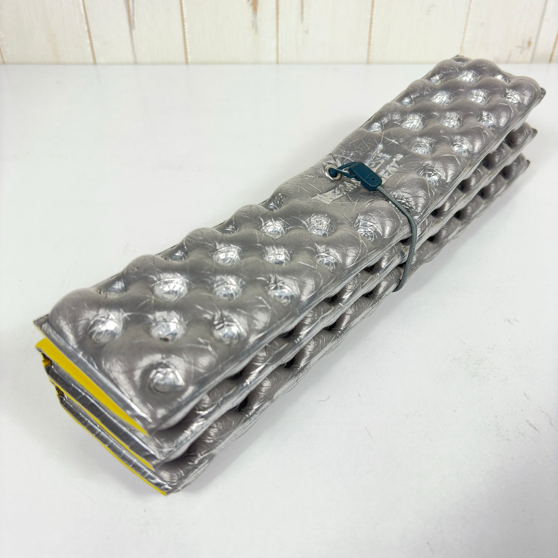 パンクとは無縁のクローズドセルの座布団。アルミ蒸着されているので断熱性に優れています。アコーディオン状に小さく折りたたみ可能。収納に便利なバンジーコードが付いています。