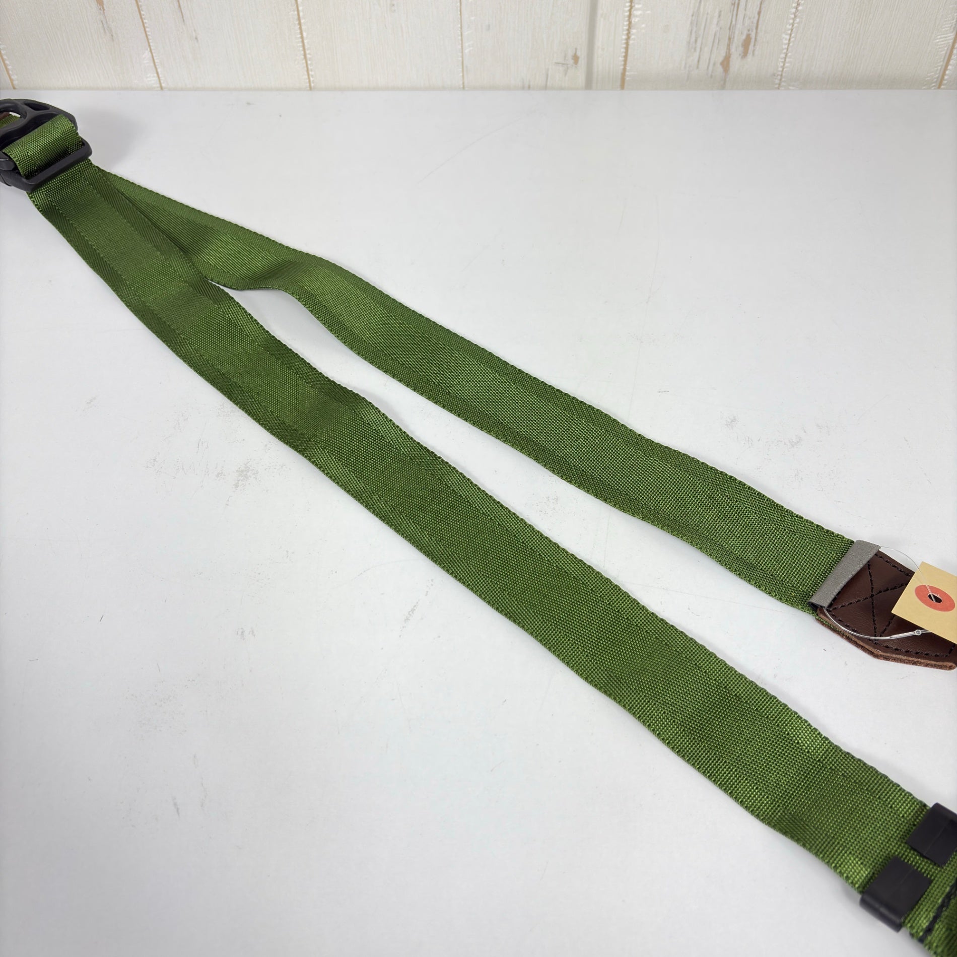 ストラップの太さは15mm、25mm、38mmの3サイズ。15mmなら軽量なコンパクトカメラ、25mmはレンズが交換式のコンパクトカメラ~中型のミラーレスなど。38mmは小型~大型までの一眼レフが目安です。 diagnl ダイアグナル カメラストラップ ワンタッチで開閉するバックルは装着もスムーズ。指を掛けられるつまみ部分を引くことでストラップが瞬時に緩みます。 diagnl ダイアグナル カメラストラップ 余ったストラップは付属のマジックテープで巻き取っておきます。ストラップが垂れないようにストッパーもそれぞれ付いています。