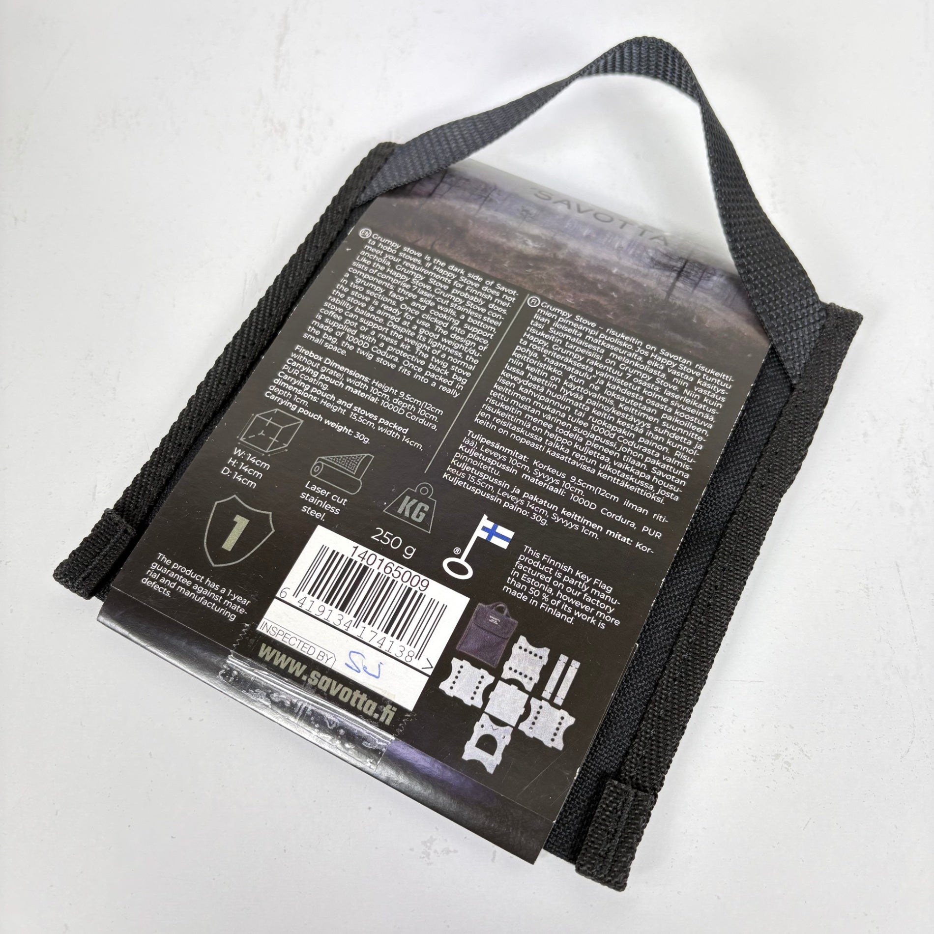 7枚のレザーカットされたステンレススチール部品(本体5枚、調理サポート2枚)で構成された組み立て式のストーブ。フィンランド製のアウトドア調理ギア。 z00056983