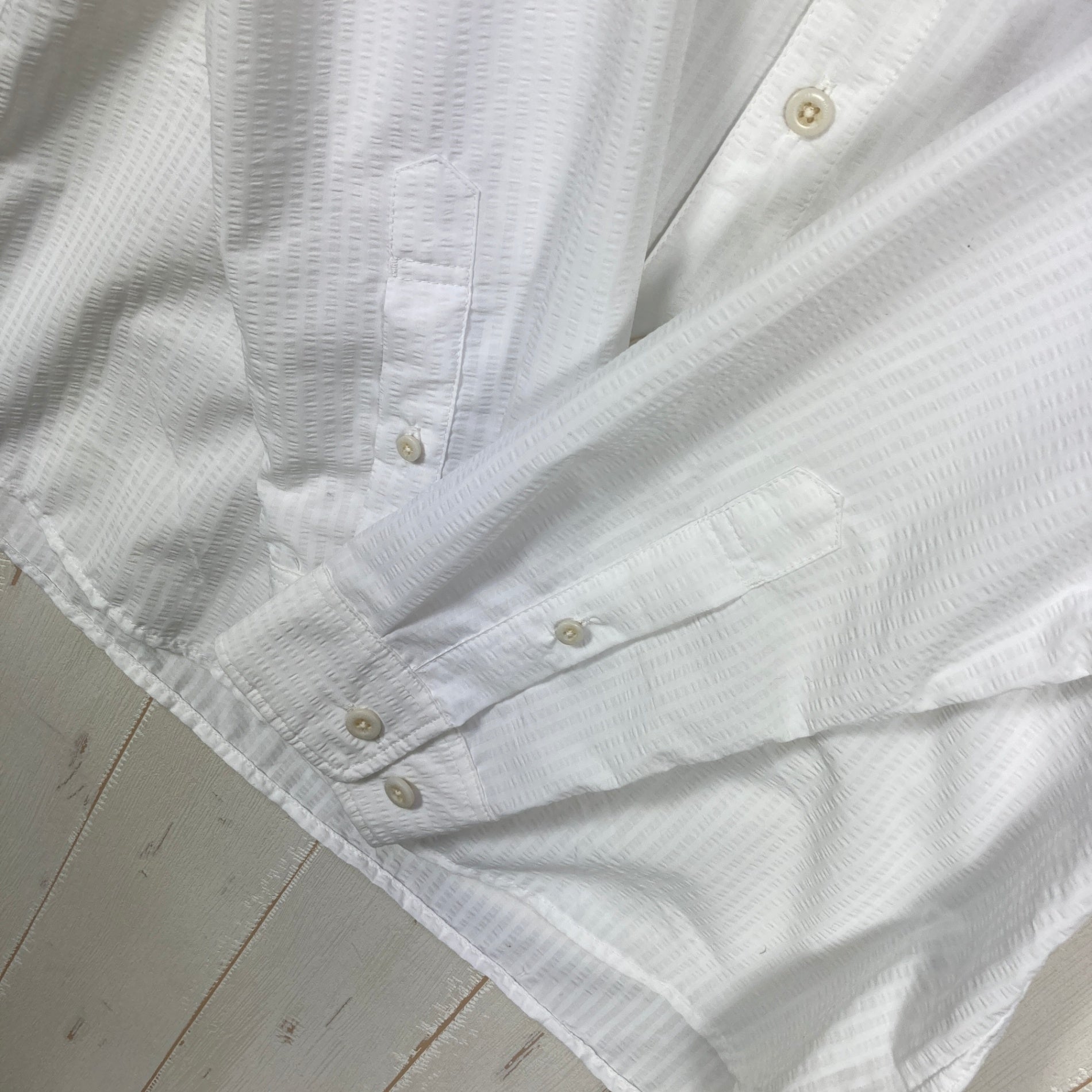 生地表面に独特の凹凸を持つサッカー地を使用したボタンダウンシャツです。生地と肌が点で接するため肌離れがよく、常に爽やかで涼しい着心地が持続。また、速乾性に優れ、シワになりにくく型くずれもしにくいため、長期の旅行やクールビズにもおすすめです。