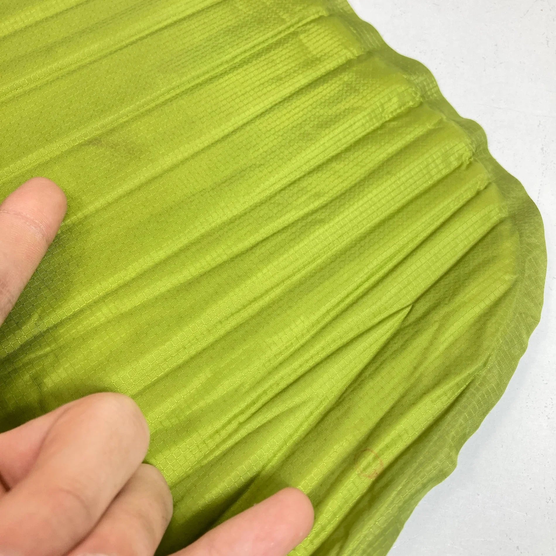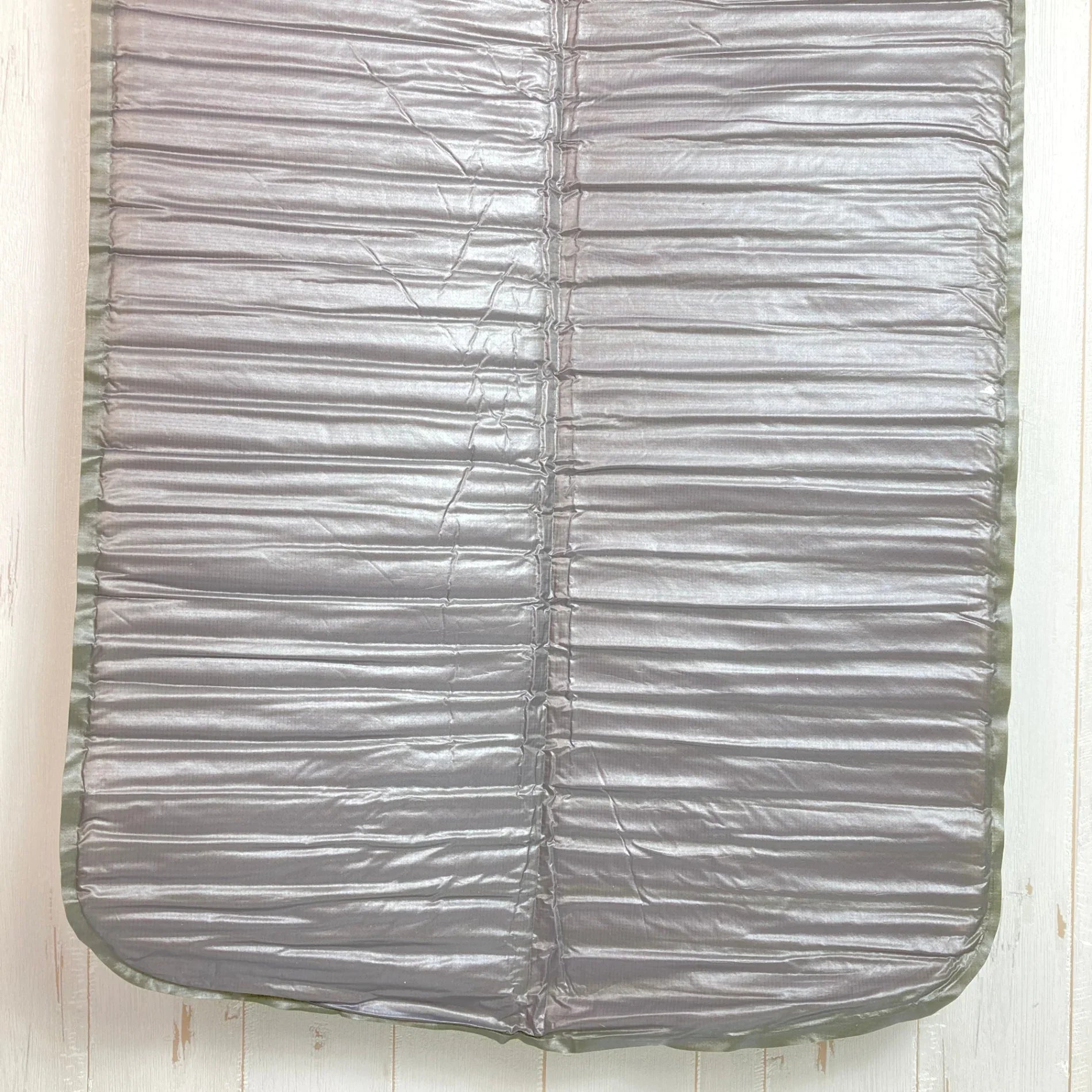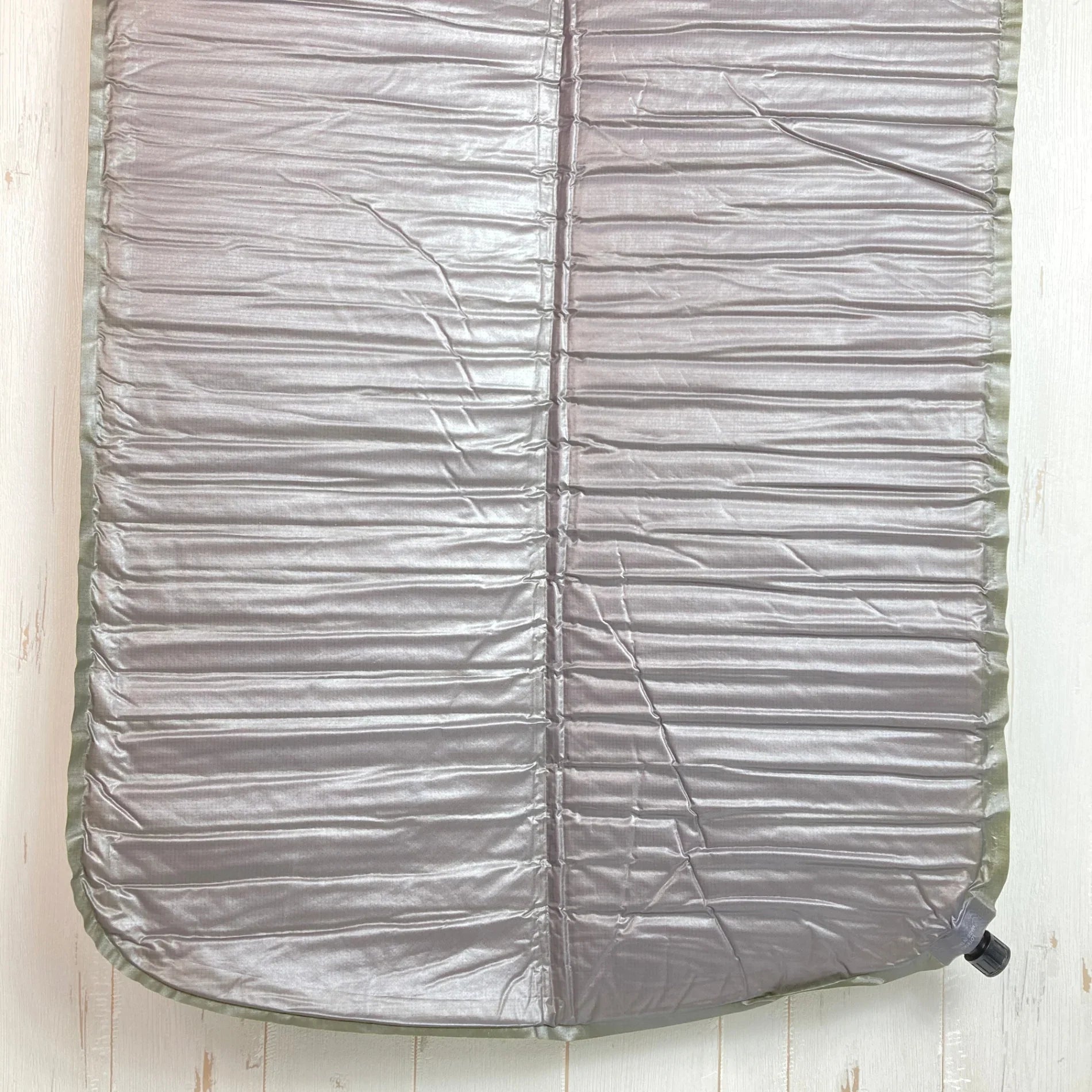重さ軽減に成功したスーパーライト。 フォームパッドに水平ヨコ穴をあけて軽量化と畳みガサ高が小さくなるようにしました。万が一のパンクでもウレタンフォームで地面の冷えはある程度防ぎます。 表側素材:30dポリエステル(リップストップ) 裏側素材:20dポリエステル(滑りとめ加工) 内側素材:スーパーライトフォーム カラー:表/グリーンティー、裏/チャコール サイズ:長さ122×幅51×厚さ2.5cm 収納サイズ:長さ26×直径11cm 重量:365g(マット本体)
