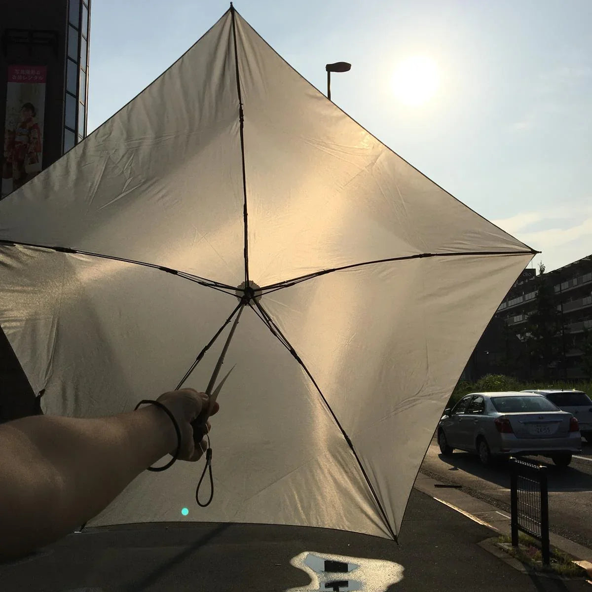 驚異の76g! 圧倒的な軽さ・細さ・コンパクトさ。 画期的だった従来品の90gを大幅に下回る超々軽量ながら強度はアップ 持ってる事を忘れてしまうのでワンポイント加えた収納袋で存在感をアピール。 ■使用時:直径830mm ■収納サイズ:220mm ■質量:76g ■素材:カーボン ■骨:5本 z00040744