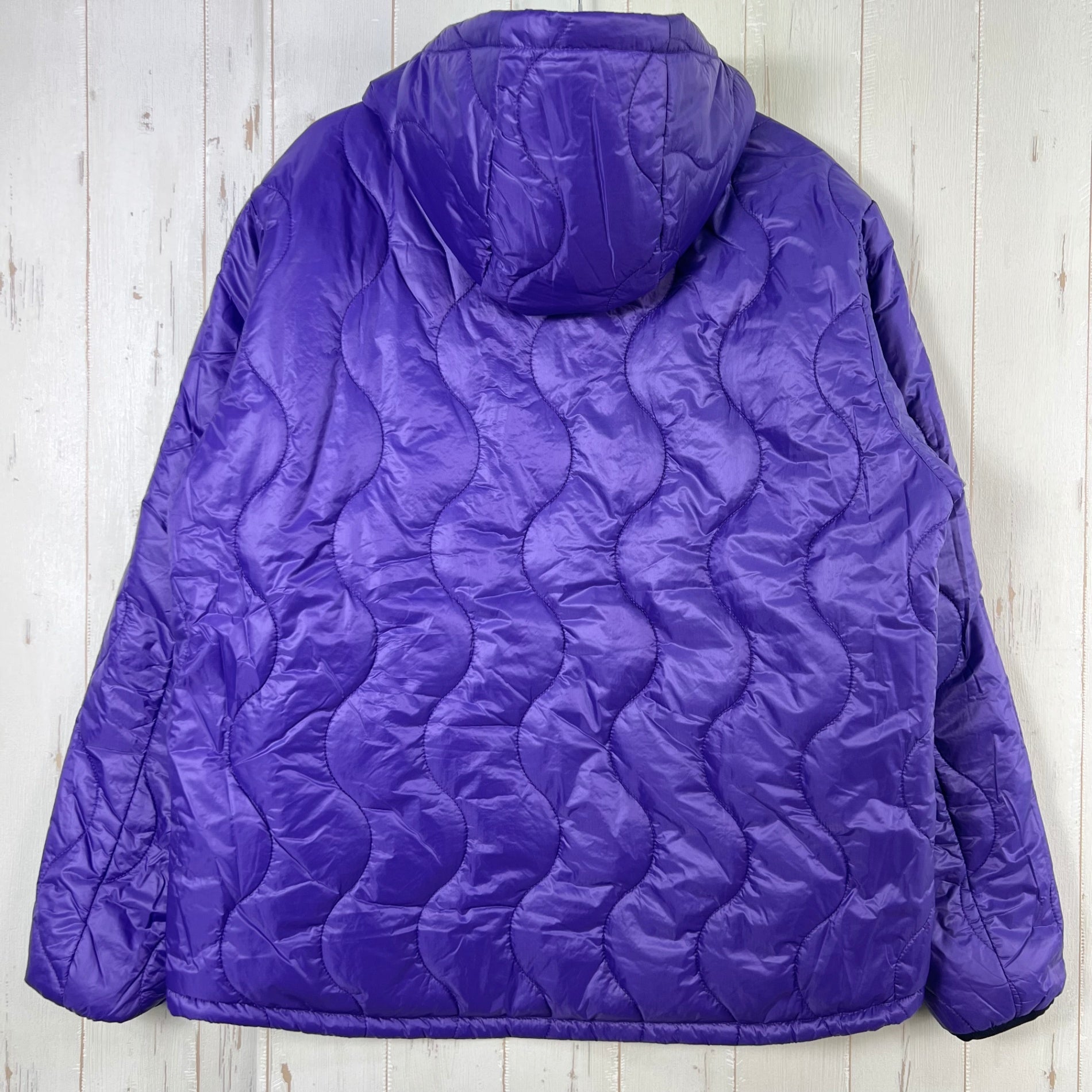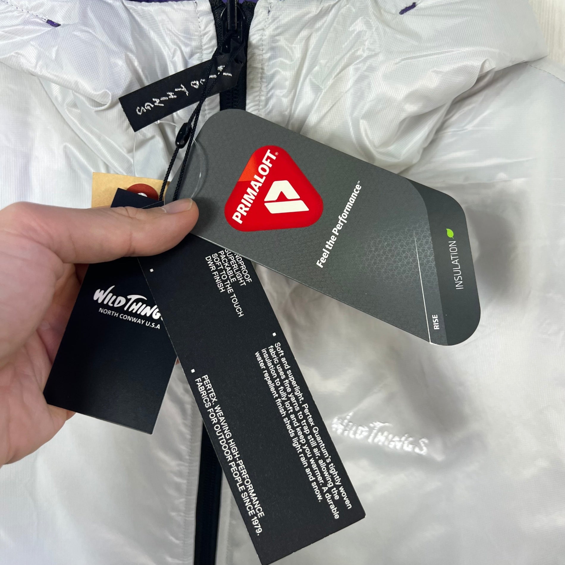 素材 表地: ナイロン100%(PERTEX QUANTUM) 裏地: ナイロン100%(PERTEX QUANTUM) 中綿: プリマロフト(ポリエステル100%) 機能 リバーシブル、軽量、撥水性、保温性、耐久性 商品説明 往年のWILD THINGSで人気を集めた波キルトとソリッドなBELAY JACKETベースを1着で楽しめるリバーシブル中綿ジャケットです。表側は波キルトにWILD CATの旧ロゴ復刻ネームを配し、レトロアウトドアな雰囲気を演出しています。 裏側はステッチを表に出さず、ロゴもリフレクタープリントを採用したソリッドな仕上がりです。表裏両側にPERTEX QUANTUMを使用し、20Dのナイロン糸による軽量で柔らかな生地感と、リップストップ織りによる耐久性を両立しています。中綿には高機能なプリマロフトを採用し、コンパクトながら高い保温性を実現しています。 ディテール リバーシブル仕様 PERTEX QUANTUM使用(表裏両側) プリマロフト中綿 表側: 波キルト、旧ロゴWILD CAT復刻ネーム 裏側: キルトレス、リフレクタープリント ポケット内からドローコードで裾を絞れる 撥水加工 フード収納可能 z00056188