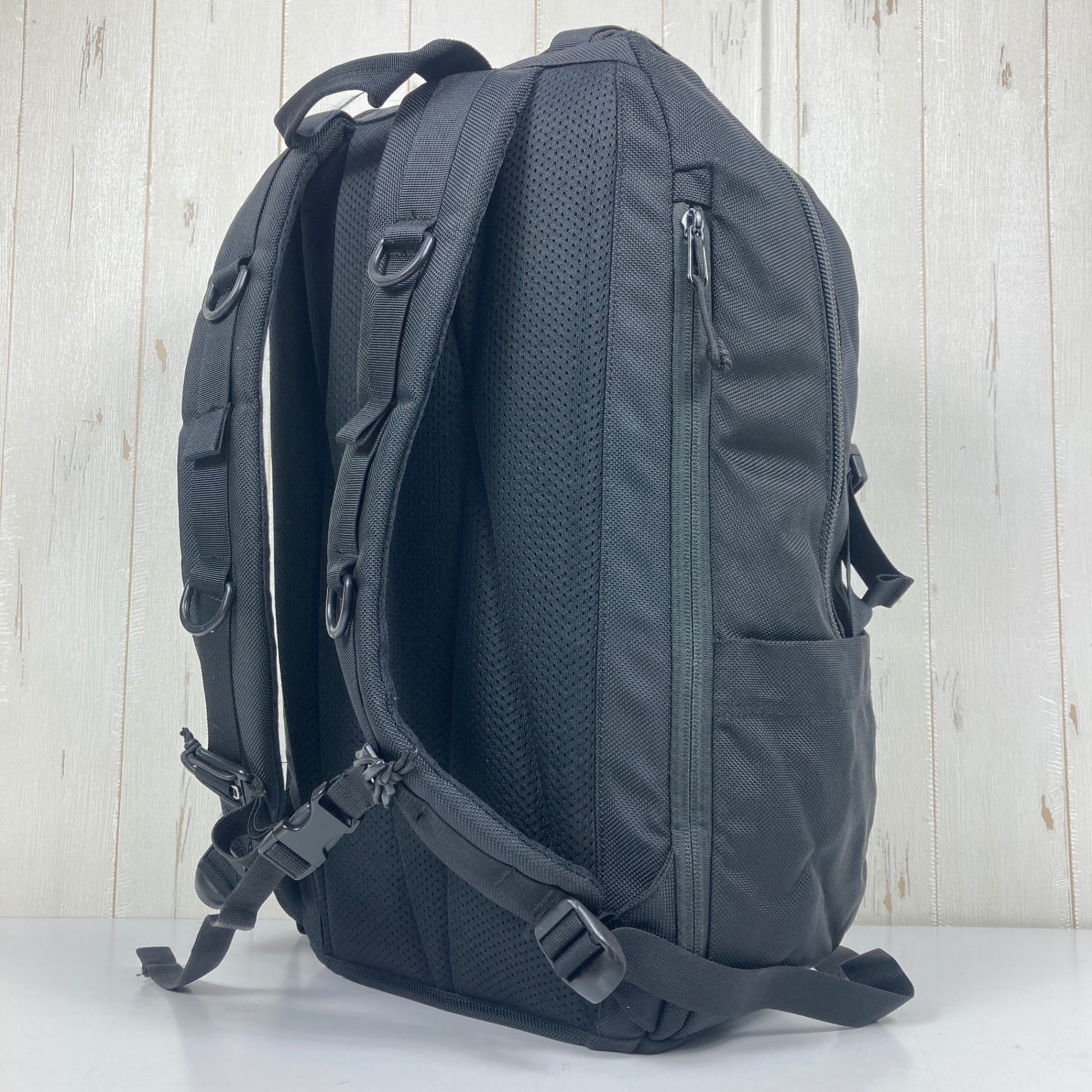 ナイロンの5倍の強度を持つバリスティックナイロン製のタフなバックパック。フラップを開けなくても、左サイドのファスナーからダイレクトにメインコンパートメントにアクセス可能。メインポケット内にはタブレットやノートパソコンを収納できるPCスリーブが付いています。フロントポケット内のオーガナイザーポケットのほか、サイドにペットボトルや傘を収納できるスリーブ付きで、実用性にも富んだバックパックです。