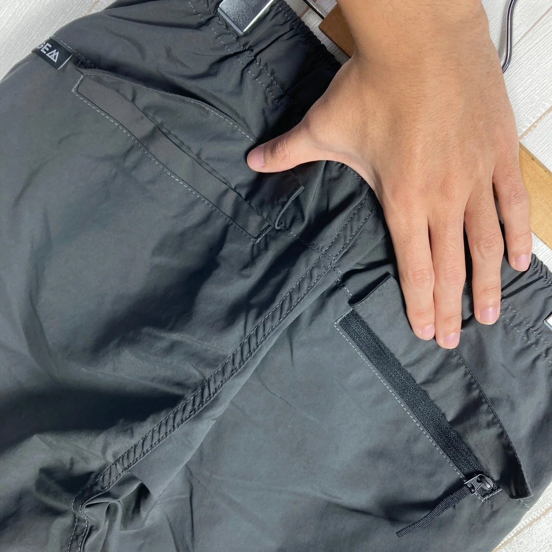 イメージは「トラウザース」の様なシルエットで、日常でもハイキングでも履けるパンツです。ウエストはゴム仕様でリラックスできるけれど、履いていてスッキリとしたシルエットに拘りました。このパンツは、カジュアルな場面でもアクティブな場面でも快適に過ごせるデザインとなっています。 個人的にはストレッチ入りのパンツが好きではなく、長年履いていません。その理由は、ストレッチパンツの多くが履いているうちに「膝」が出てしまい、シルエットが崩れてしまうことが多いからです。この問題を防ぐために、ノンストレッチの生地を選んでいます。ノンストレッチですが、運動量はヒップから膝、裾にかけて十分なゆとりを確保しています。この設計により、動きやすさを損なうことなく、常に綺麗なシルエットを保つことができます。 さらに、生地選びにも細心の注意を払っています。耐久性があり、日常の使用にも耐えられる素材を使用しています。また、ハイキングなどのアウトドアアクティビティでも快適に過ごせるように、通気性や速乾性にも優れた素材を選びました。これにより、暑い日でも快適に過ごすことができ、汗をかいてもすぐに乾くので、常に快適な状態を保つことができます。 このパンツは、デザインと機能性を両立させた一着です。日常のカジュアルスタイルにも、アウトドアアクティブスタイルにもオススメの1本です。 【Material】 『Basic Hike Pants』にはコットンライクなワッシャー加工を施したSupplexナイロン生地を使用しています。 ワッシャー加工とは、織物や編物の生地に独特の風合いや柔らかさを与えるための加工方法の一つです。この加工は、繊維を事前に染めたり、生地を特殊な方法で洗ったり、仕上げの工程で独特の技法を使うことで行われます。ワッシャー加工によって、生地は柔らかくなり、風合いが向上し、シワになりにくくなります。 〈柔らかさと快適性〉 Supplexナイロンエアジェットテクスチャリングという技術を用いて製造され、これによりナイロン繊維が天然のコットンのような柔らかさと快適性を持つように仕上がります。この技術では、高速の空気の流れを使って繊維を膨らませ、柔軟性と柔らかさを向上させます。 〈耐久性〉 ナイロン自体の化学構造が高い耐久性を提供し、Supplexファブリックは摩耗や破れに強く、アクティブな使用に耐えうる堅牢さを備えています。また、色あせや形崩れが少ないため、長期間にわたって新品同様の外見を保ちます。 〈速乾性〉 Supplexファブリックは水分を素早く外部に逃がし乾燥させる能力が高いため、激しい運動時に発生する汗を効果的に管理します。これにより、着用者はより涼しく快適に活動できます。 〈生地の製造過程〉 Supplexファブリックの製造には、繊維が一定の基準を満たすよう厳格なプロセスが求められます。例えば、使用されるナイロン繊維は特定の細かさ(dpf: dtex per filament)を保持しており、エアジェットテクスチャリングを通じて適切に加工される必要があります。また、The LYCRA Companyによるテストと評価を受け、各バッチごとに一貫した品質が保証されます。 【Design】 ベーシックなシルエットで飽きなく長く履けるパンツを目指してデザインしました。 ヒップ部分はゆったりと裾にかけ自然と細くなっているテーパードデザインシルエットです。 ウエスト口には平ゴムとナイロンテープのベルトが内蔵されています。 前股ぐりには前明き(ファスナー明き)がありませんがウエスト部分はガバッと広がるので、脱着時も楽です。ウエストテープを絞りお好みのウエストサイズに調整してください。 ウエストテープもそうですがテープアジャスターに特に拘りました。 国内外の様々な種類、サイズのパーツを取り寄せて、テープとの相性。閉まりやすさ。薄さ。に拘りました。 股下にはマチを入れています。脚を広げる運動、上げる運動の際の運動量を補います。 このパンツには合計5つのポケットを装備しています。 パンツ左側にはサイドポケット、フラップ付きのバックポケットがあります。 パンツ右側にはサイドポケット、サイドシームジッパーポケット、フラップ付きのジッパーポケットがあります。 サイドポケット口は手の入れやすさよりも物を入れた後の落っこちを防ぐ為に鋭角なポケット口デザインにしています。ポケットの袋布も同じ理由で深めに設定しています。 サイドシームジッパーポケットは一般的なスマートフォンが収まるサイズになっています。 スマートフォン以外にもキー類など落としたくない携帯品を収納してみてください。 ※サイドシームポケットのサイズ XXS、XS=12cm S、M、L=14cm スマートフォンのサイズによっては入らない場合もございます。 上記画像は「iPhone XS」です。 バックポケットの右側はジッパーポケットになっています。 股上を深くデザインしているのも特徴の一つです。 股上が浅いと、かがむ動作をしたときに腰部分が現れてしまった