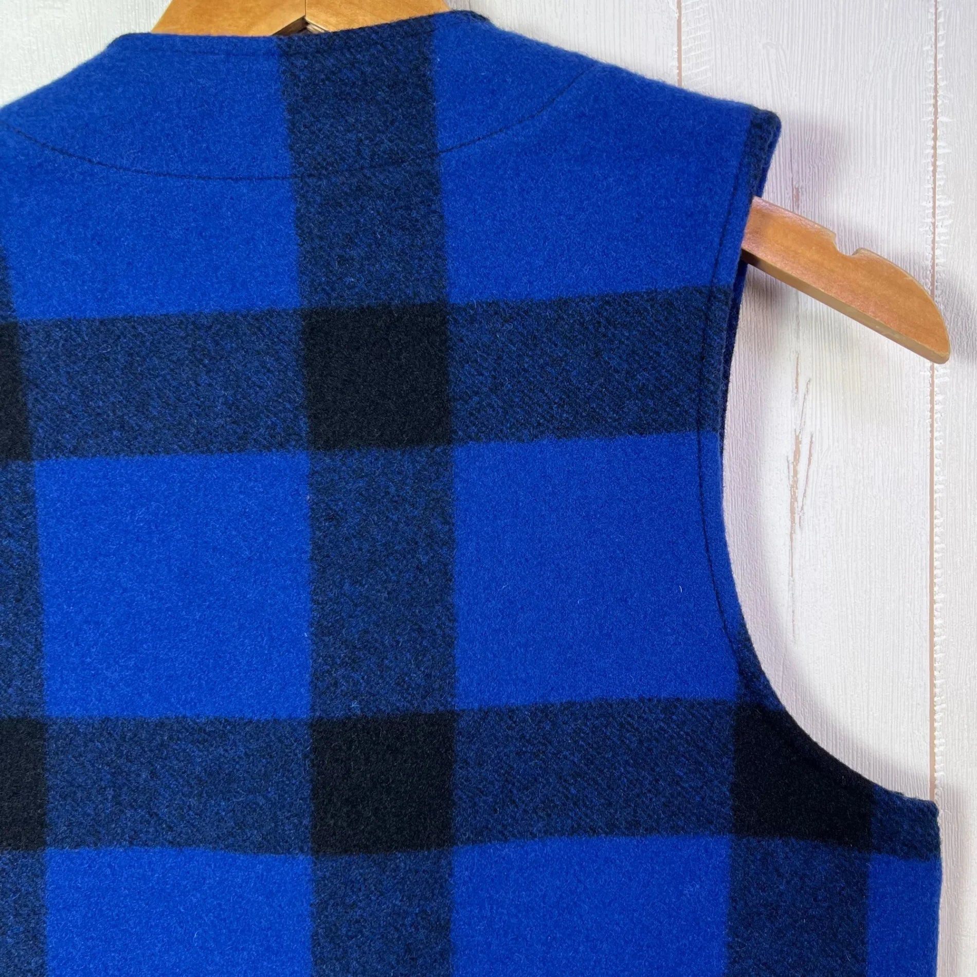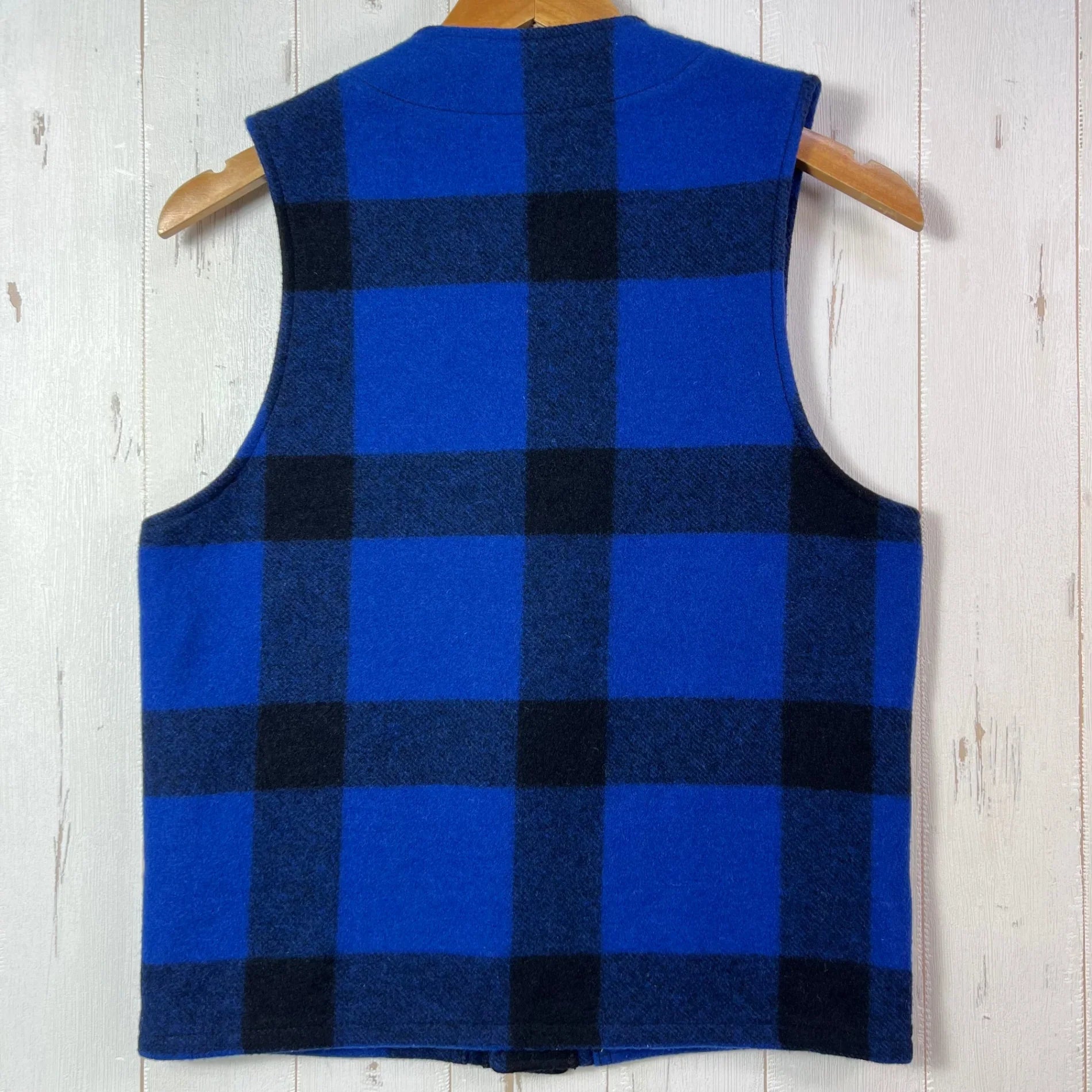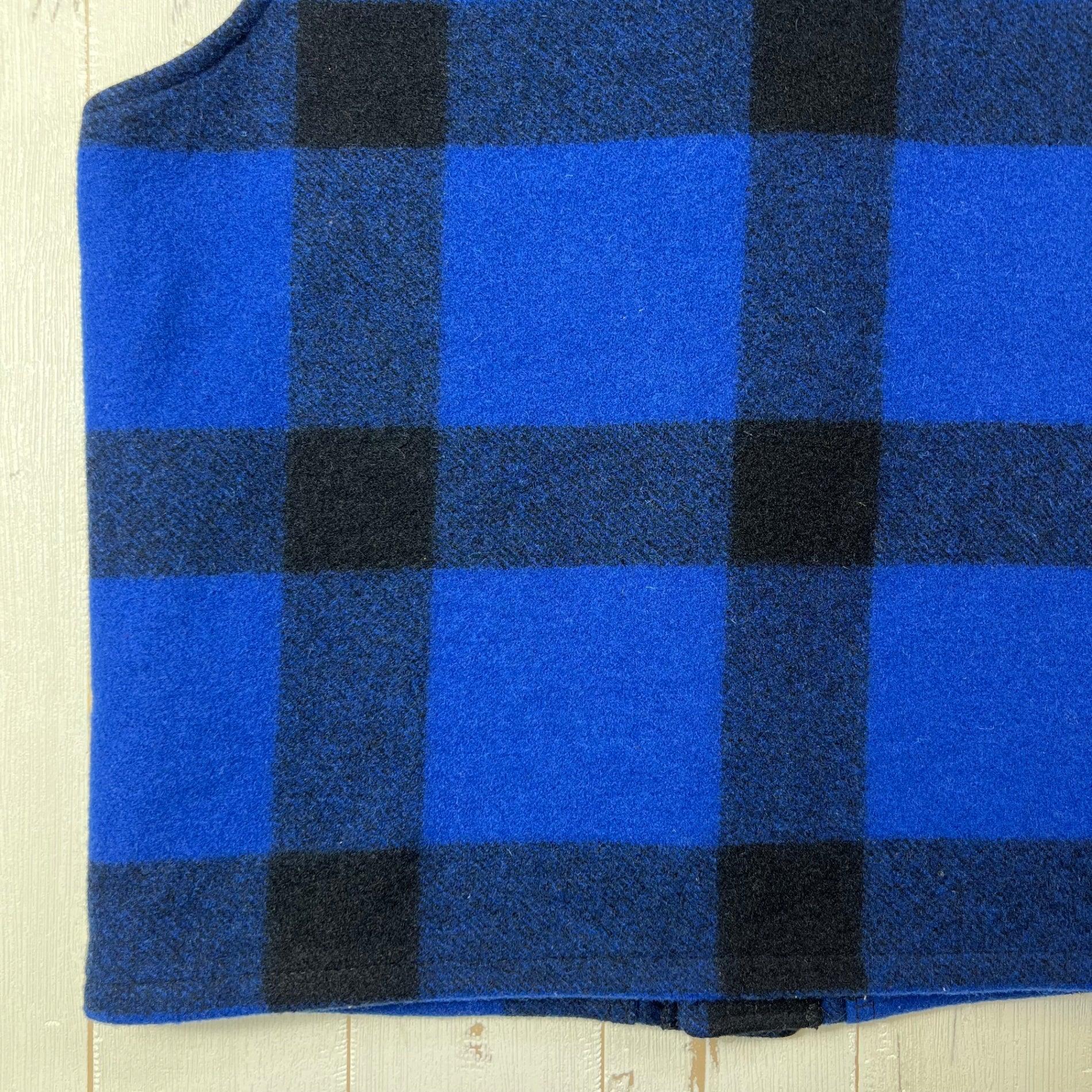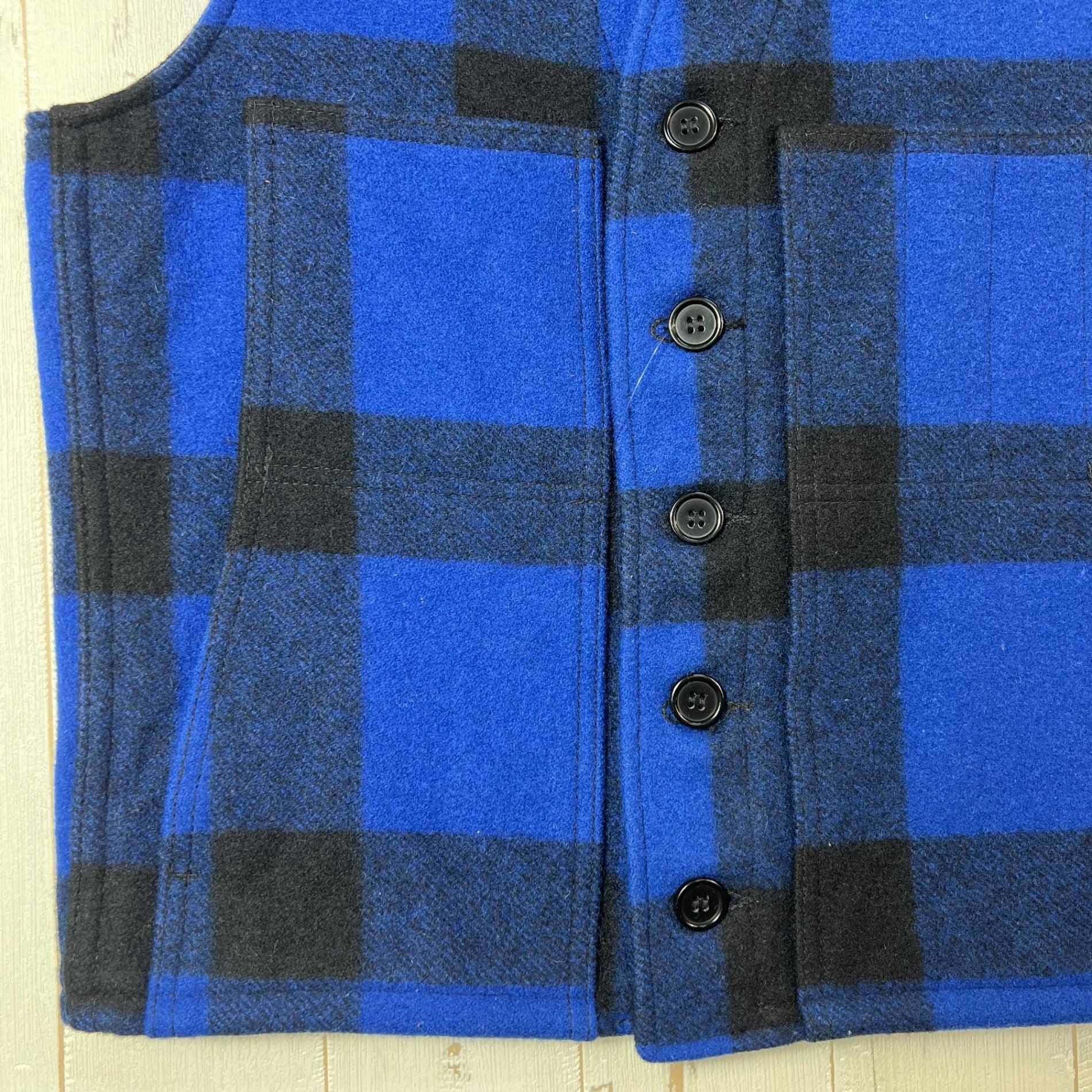 男士36码蓝色Filson Mackinaw羊毛背心,蓝/黑色。稀有难寻。羊毛抓绒上衣。z00054323。蓝/黑色。