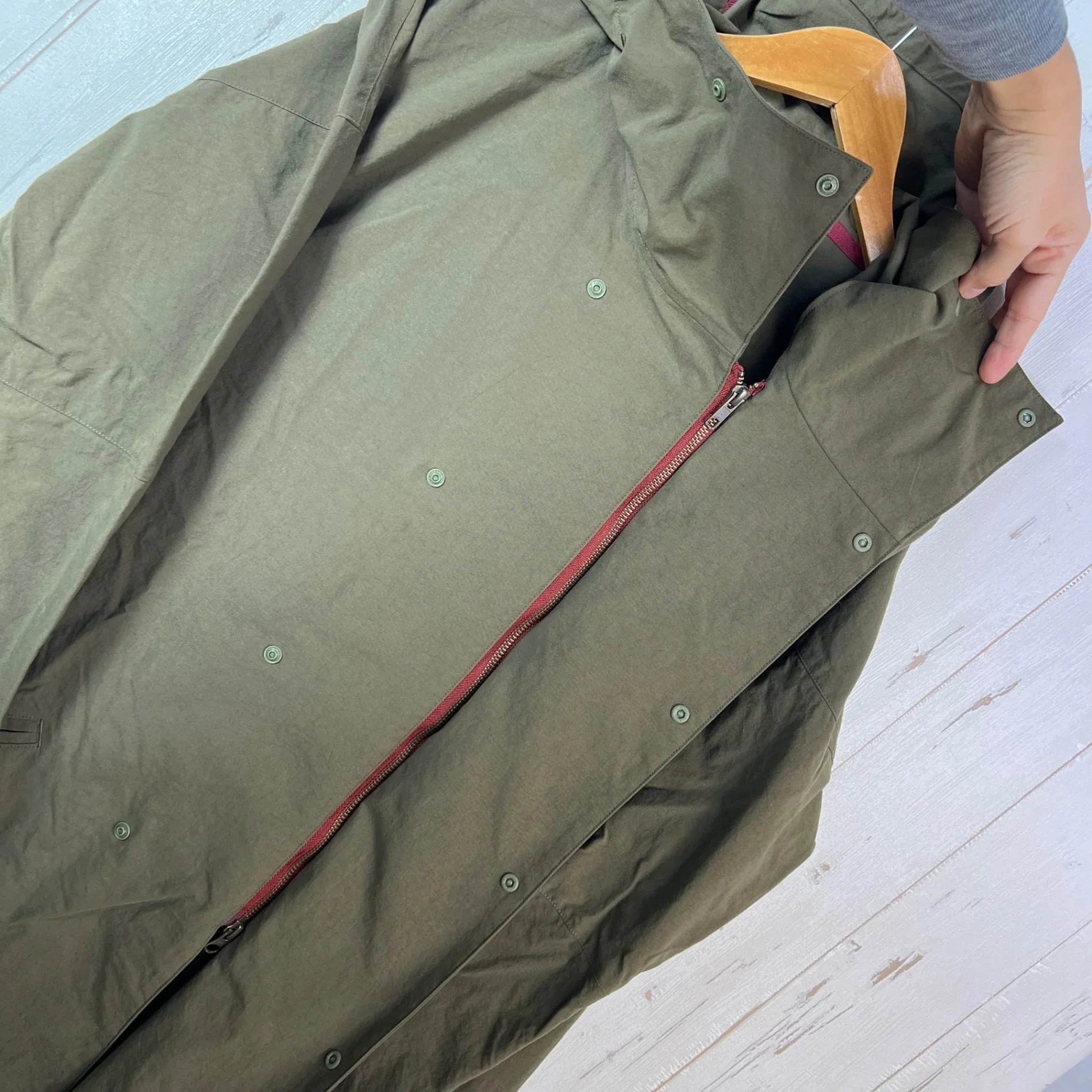 这款复古工艺尼龙半截外套,设计和配色都散发着浓郁的日式风情,宛如一件日式登山大衣。正面采用双排扣设计,配有拉链和圆点纽扣,长度刚好遮住腰部,单穿时能有效防风保暖。腰部口袋的位置设计巧妙,不会妨碍背包的腰带,方便取用,也便于存放手套和笔记本等小物件。它是冬季在荒凉山脊上悠闲徒步的理想外套之选。