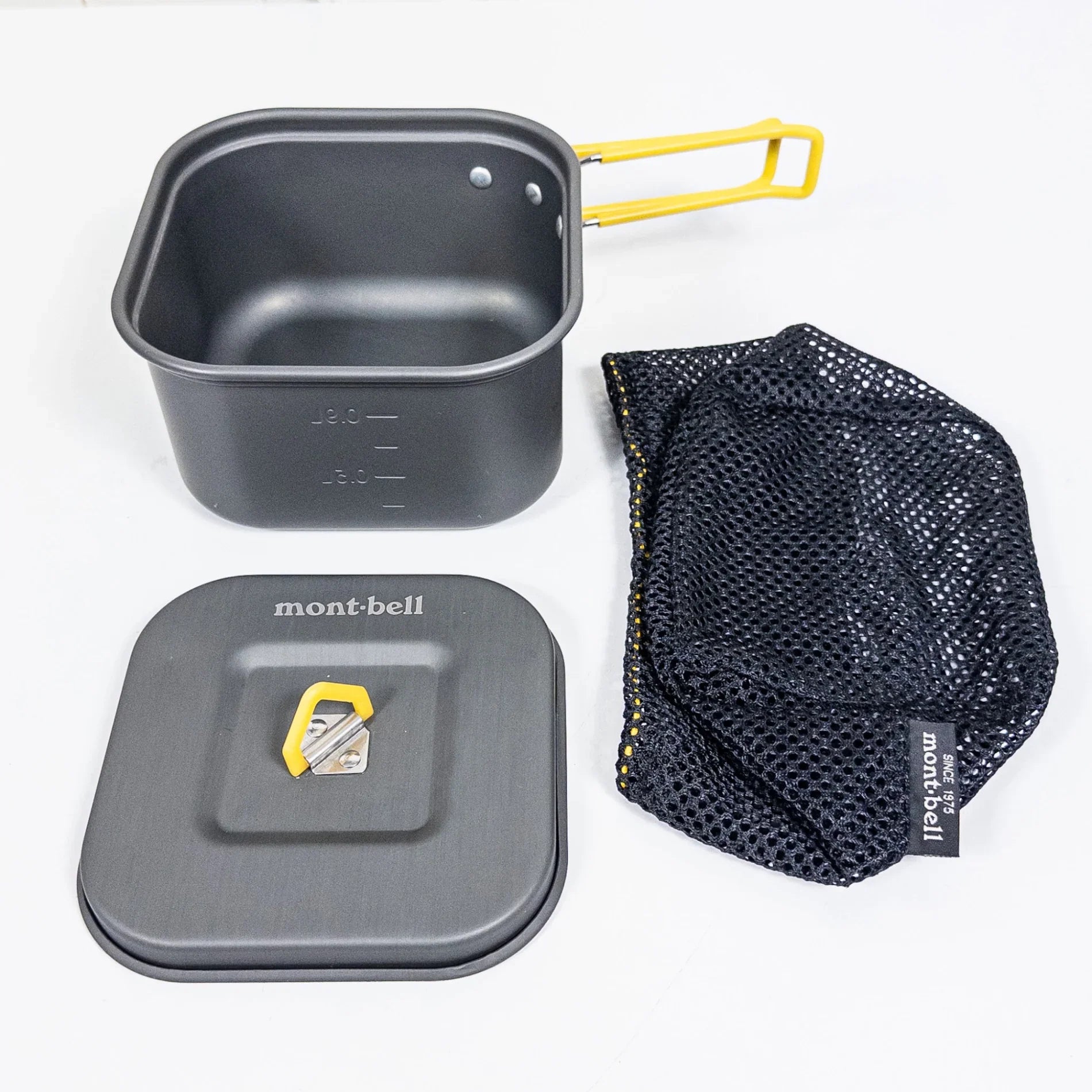 这款方形炊具可最大程度减少包装时的死角。Alpine 方形炊具 12 可堆叠存放,盖子的设计可避免令人不快的摩擦噪音。其形状使其易于烹饪预制方便面。 规格 【重量】200g(220g) ※括号内的重量是包含收纳袋在内的总重量。 [尺寸] 宽 14.2 x 深 14.2 x 高 8.6 厘米 [容量] 0.9L