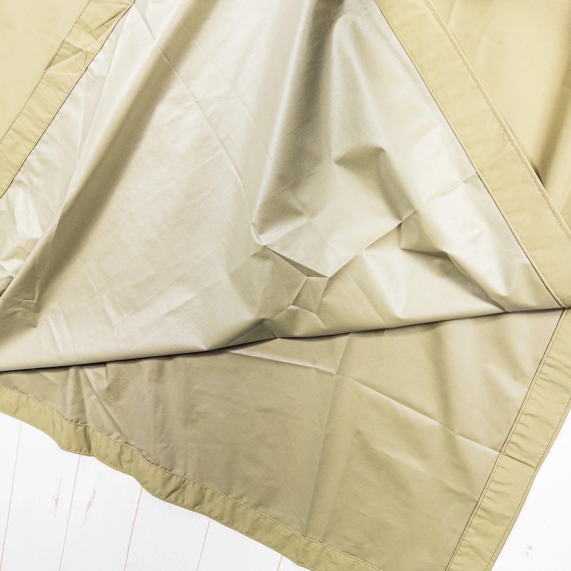 这款双层雨披采用半拉链设计,并采用公司独创的防水透气技术Texapol Core制成。打开侧边条上的按扣,雨披即可变成一块方形布料,可用作防水布。此外,利用雨披各处的拉环,在紧急情况下还可以用作临时防水布。