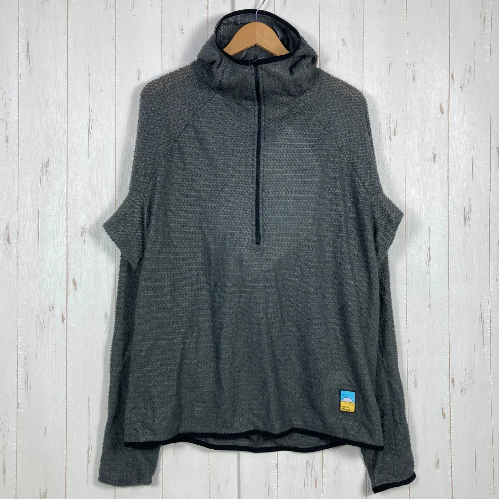 Senchi Designs Alpha 90 半拉链连帽衫,男女通用,加大码,灰色,深鼠尾草色,难找,涤纶,上衣,外套