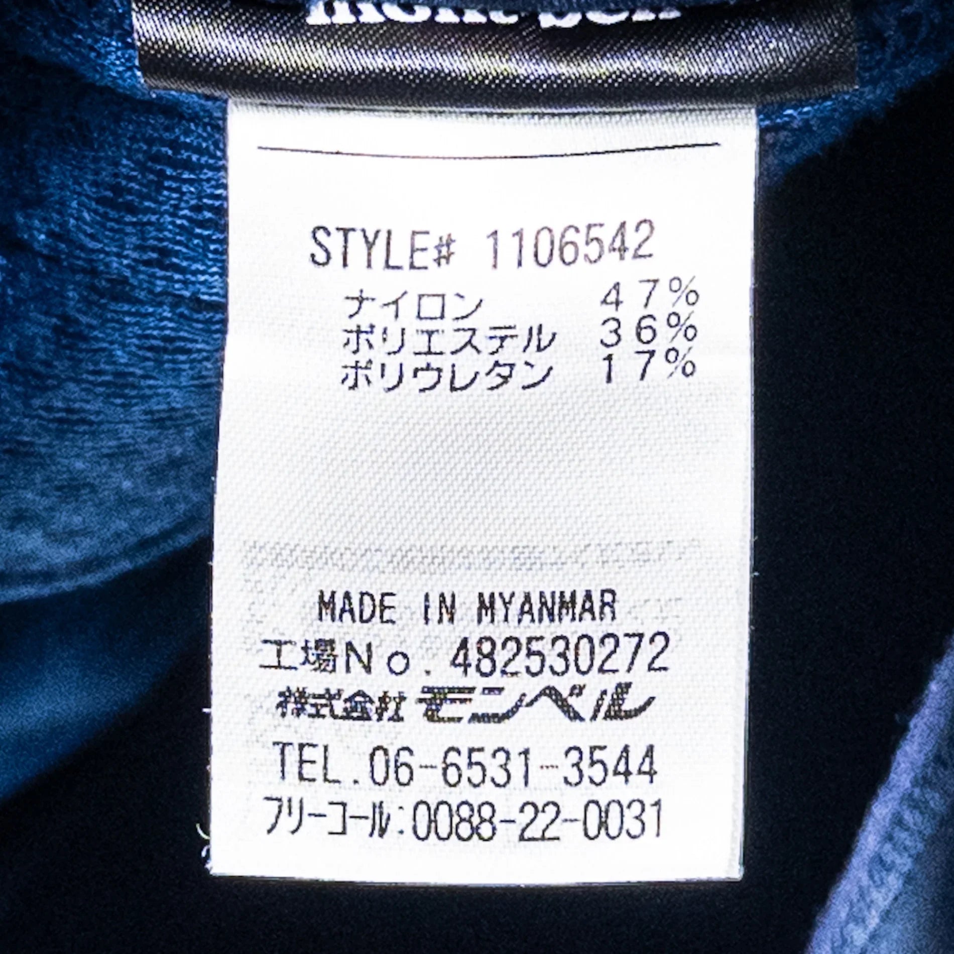 成分:47% 尼龙、36% 涤纶、17% 聚氨酯