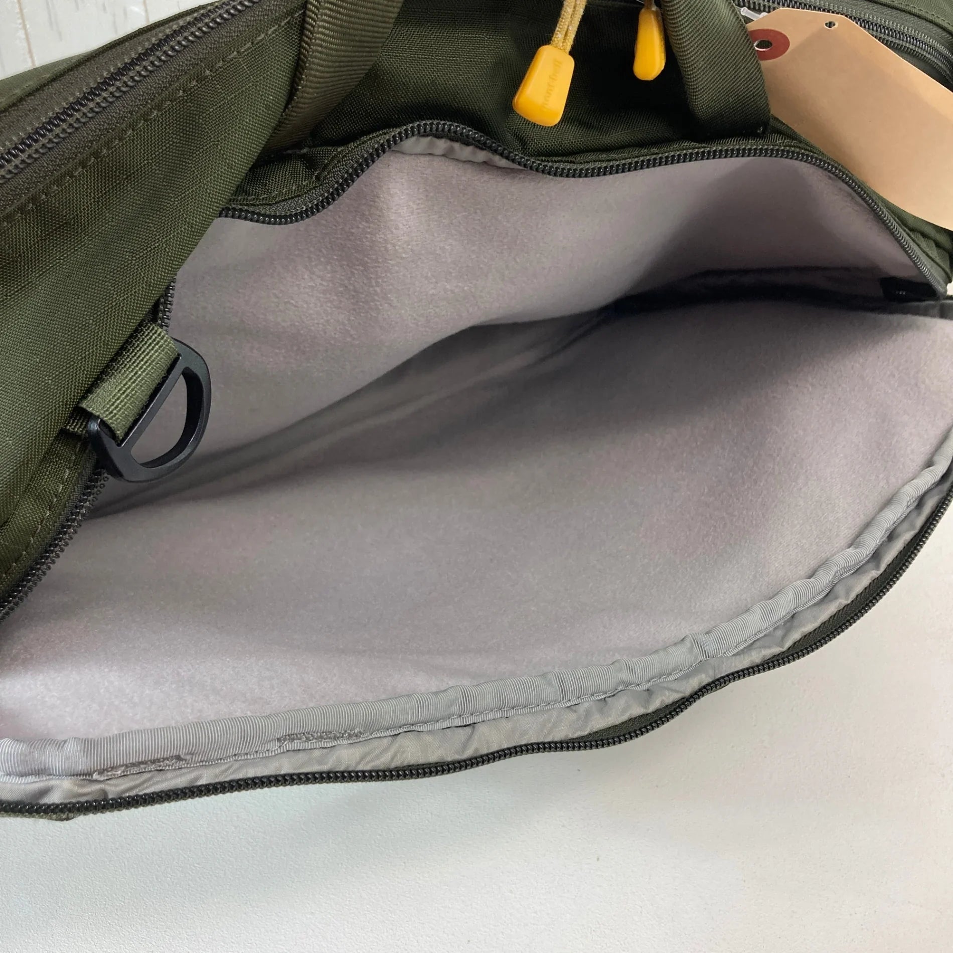 L形拉链设计,竖向手提时可从上方取物。